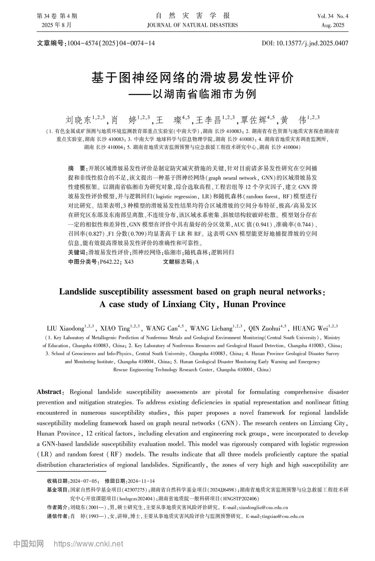 核心期刊论文:基于图神经网络的滑坡易发性评价——以湖南省临湘市为例