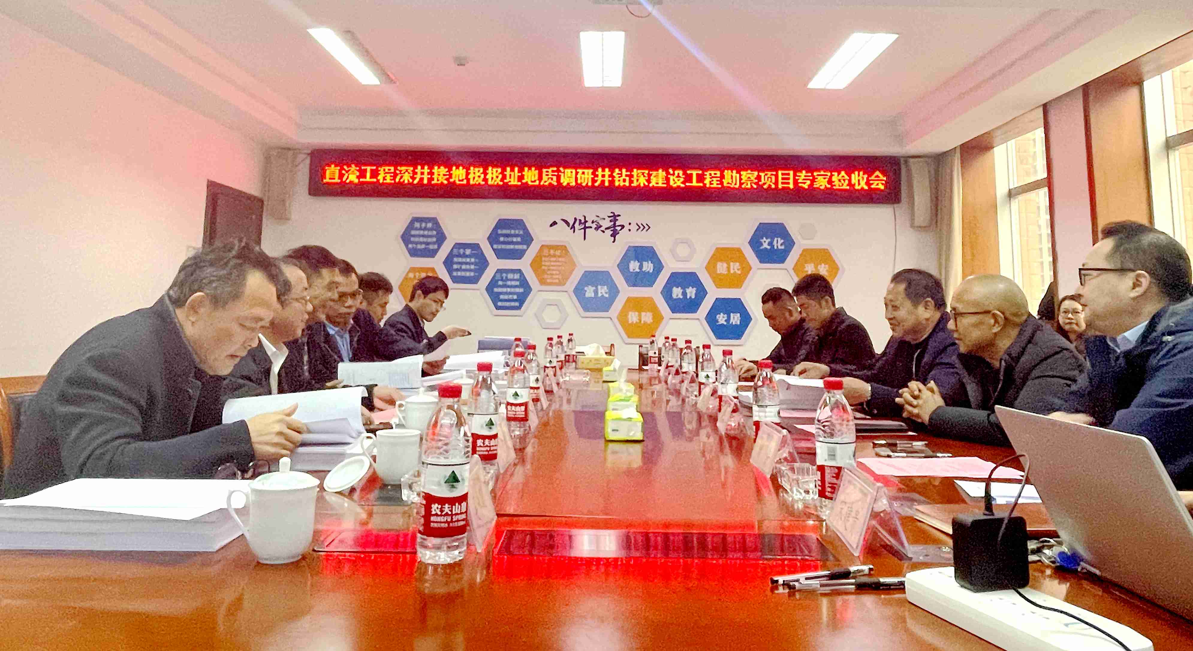 11月30日下午,直流工程深井接地极极址地质调研井钻探建设工程勘察项目验收会在湖南省工矿所召开,会议邀请来自中国南方电网、中南大学、广东省建筑设计研究院、中国能建广东省电力设计院、湖南省物化所等单位的五位专家组成验收专家组。