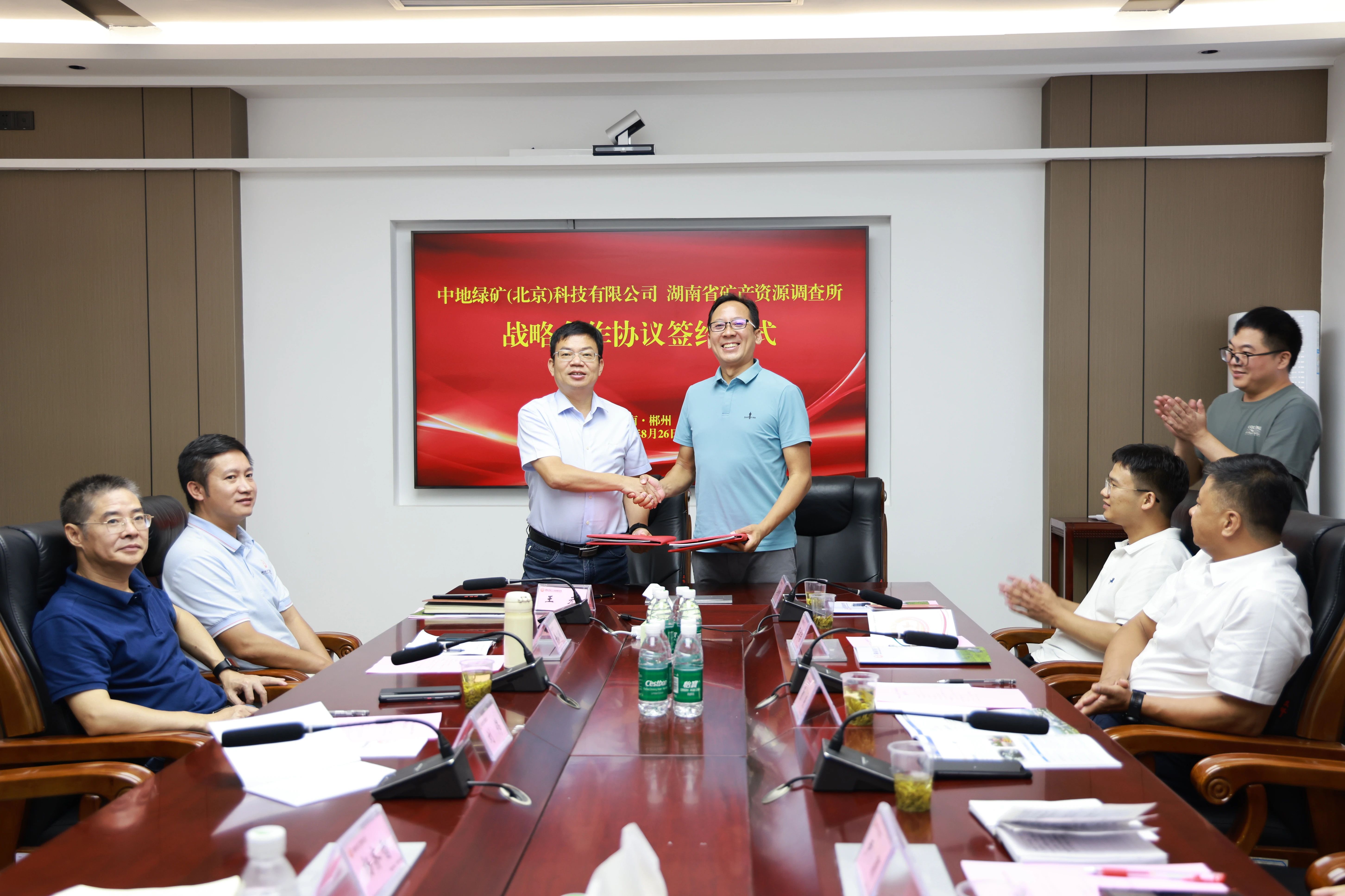 8月26日,湖南省地质院矿调所与中地绿矿(北京)科技有限公司(简称“中地绿矿”)在郴州签订战略合作协议。湖南省地质院矿调所所长刘伟、中地绿矿董事长董良代表双方签约。