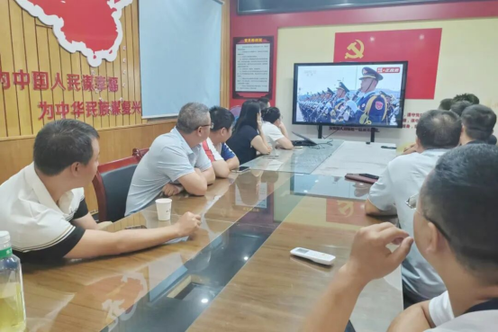 湖南地质矿调所郴州机关组织集中收看纪念中国人民抗日战争暨世界反法西斯战争胜利80周年大会实况直播。