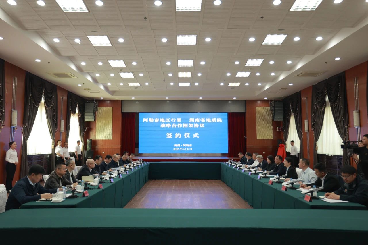 4月12日,在新疆阿勒泰市,湖南省地质院与阿勒泰地区行... .....
