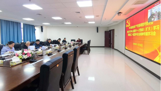 11月18日,湖南省地质院矿调所党委召开理论学习中心组2025年第11次集体(扩大)会,专题学习党的二十届四中全会精神。会议由党委书记陈学军主持,班子成员、在职院管干部,相关职能部门负责人及青年代表参加。