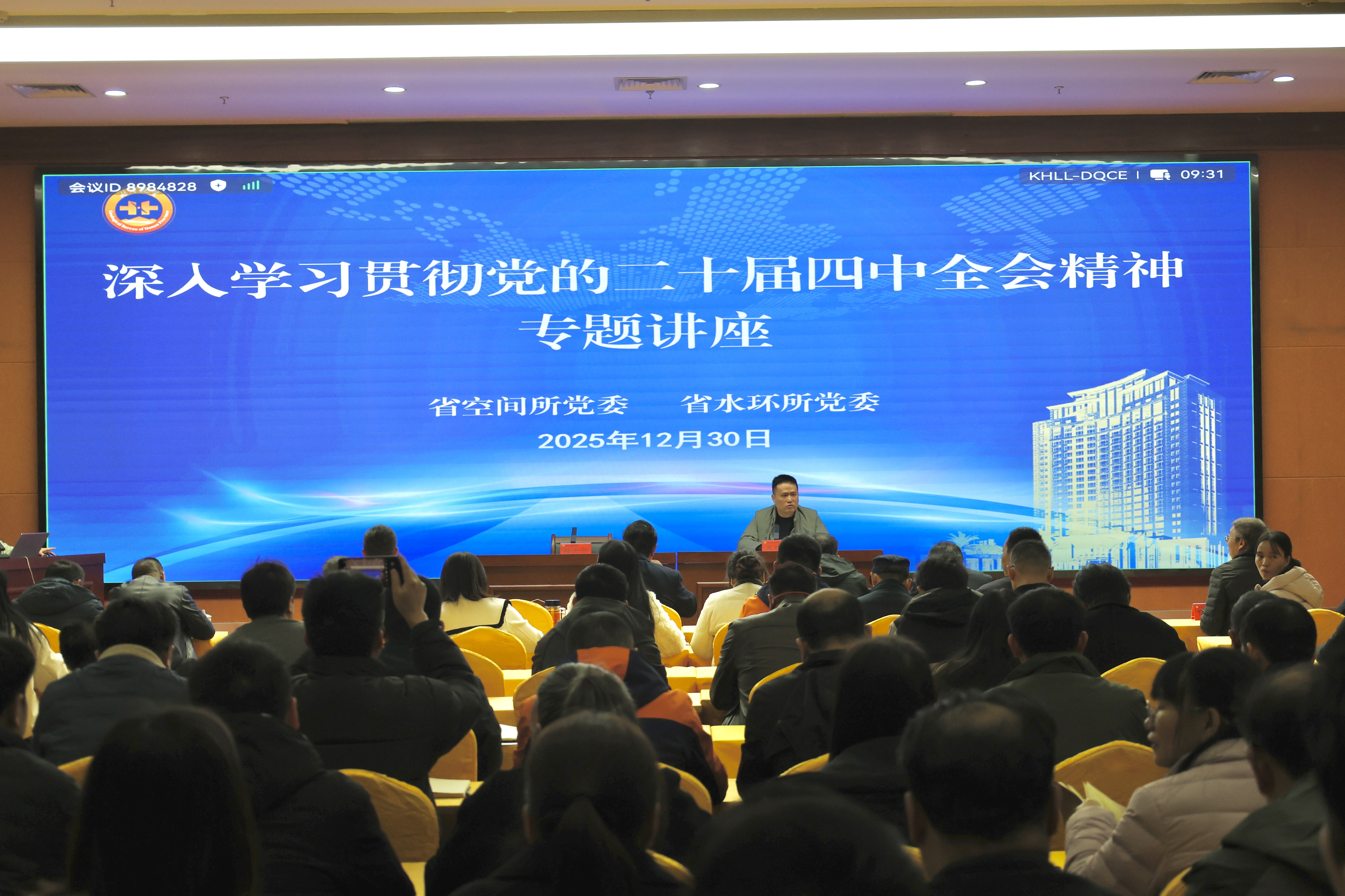 12月30日,湖南地质空间所党委理论学习中心组开展2025年第十二次集体(扩大)学习,并联合水环所举办深入学习贯彻党的二十届四中全会精神专题讲座。所党委书记龙栋炜主持并作总结讲话,所长李剑雄及在家所领导参加。