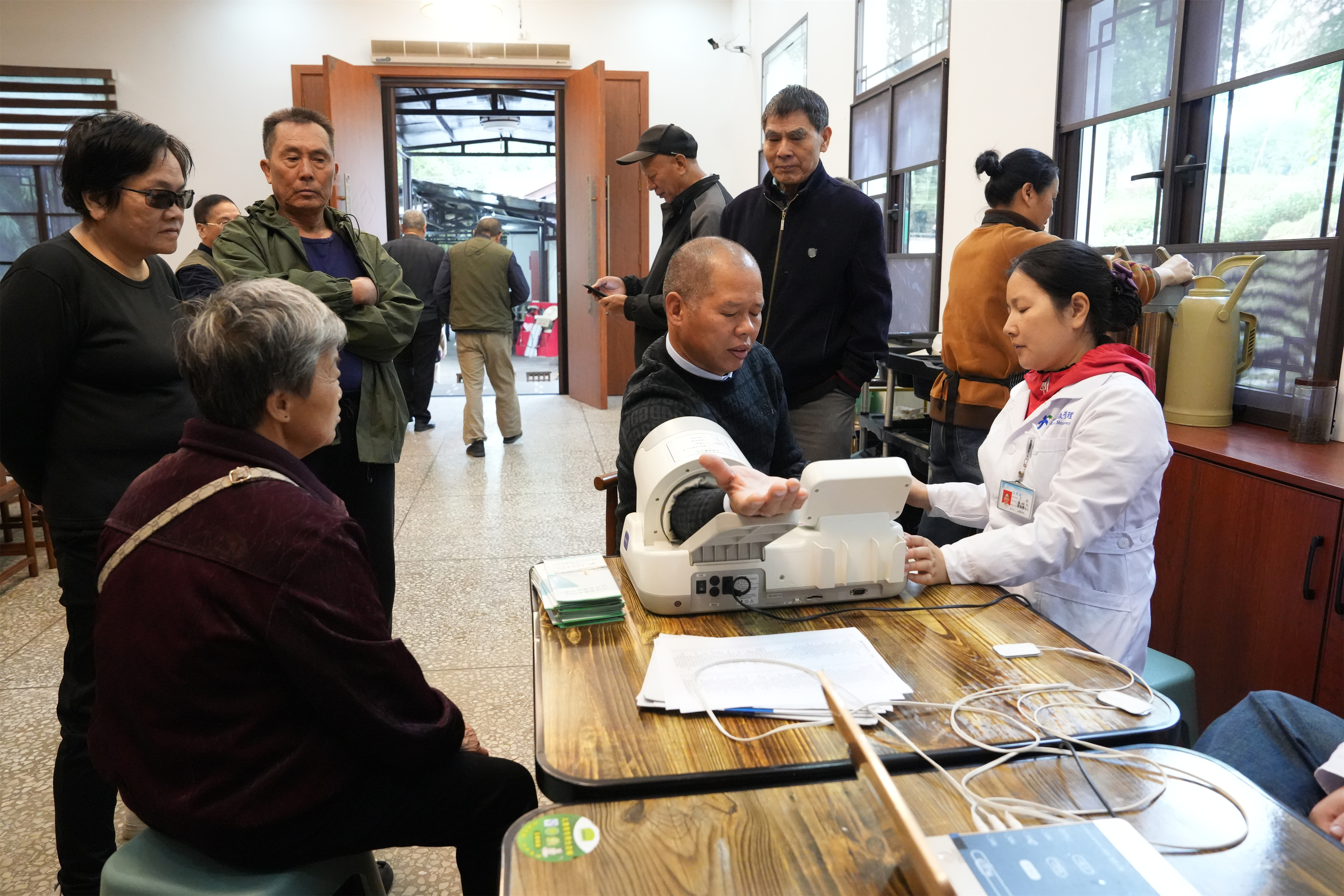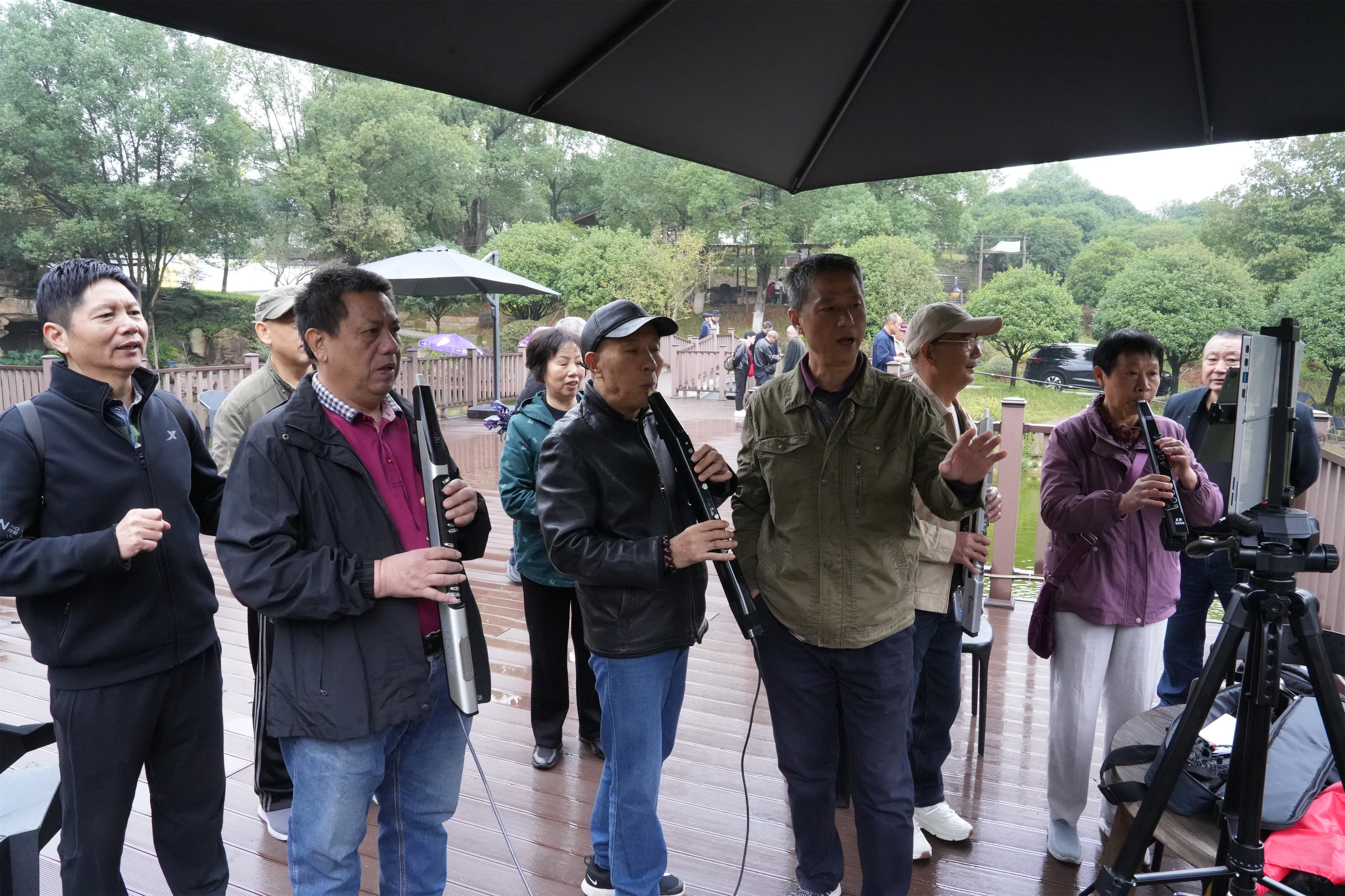 活动期间,秋光正好,气氛温馨。老同志们精神矍铄、兴致勃勃,踊跃参与到各项文娱活动中。有人一展歌喉,一首首经典老歌回荡现场,传递出对生活的热爱;有人临池垂钓,怡然自得,静享秋日悠闲时光;有人围坐对弈,切磋牌艺,谈笑风生;也有人随着音乐翩翩起舞,舞步轻盈,神采飞扬;还有三五好友结伴漫步,欣赏秋日美景,畅叙岁月静好。活动现场还邀请了鑫福健康管理(体检)中心,为老同志提供血压测量、健康理疗等服务,贴心关怀暖人心。中午,大家欢聚一堂,共进午餐,现场欢声笑语,洋溢着欢乐祥和的节日氛围。