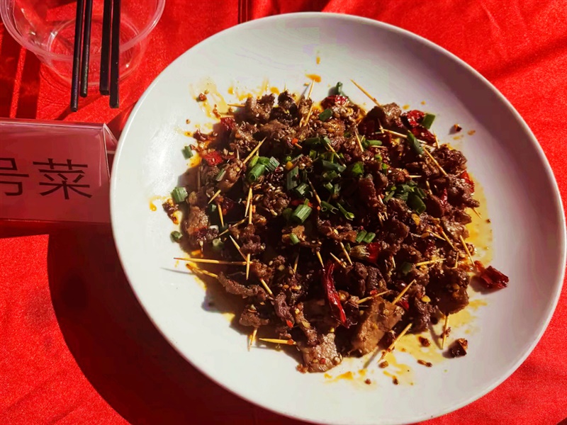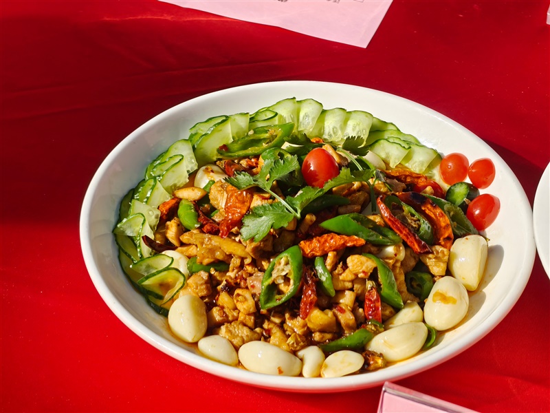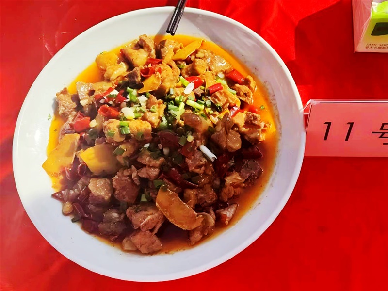 厨艺比拼现场,热闹非凡。灶台前,“你说的”队、“灶台合伙人”队、“五味同心”队、“烹燃心动队”队、“深藏blue”队五支队伍的队员们分工有序,挥刀切配、掌勺颠锅、调汁摆盘,忙而不乱。鸡肉的鲜嫩、牛肉的醇香、鱼肉的细滑、排骨的焦香,在锅铲翻飞间碰撞交融。有的复刻家乡名菜,用味道勾起乡愁;有的大胆融合创新,以食材演绎新意。当热气腾腾的菜品端上评委席,色香味俱全的摆盘与浓郁的烟火气,将这场舌尖较量的气氛推向了高潮。