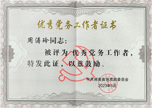 机会总是留给有准备的人。2021年7月,所在部门成功中标零陵区东湘桥矿区锰矿详查项目,合同价款达3700余万元,成为单位有史以来最大的地质勘查项目。这一项目的成功签约,为部门的生产经营提供了有力支撑,也为进一步拓展业务创建了良好的平台。功夫不负有心人,2023年,全院完成产值4000余万元,上交所管理费280余万元。她所带领的团队也被省地质院评为“优秀党支部”,连续两年被评为“市场开拓先进单位”,周涛玲本人也荣获省地质院“优秀党务工作者”、所“优秀共产党员”等荣誉称号,她的家庭被社区评为“十星级文明示范家庭”。