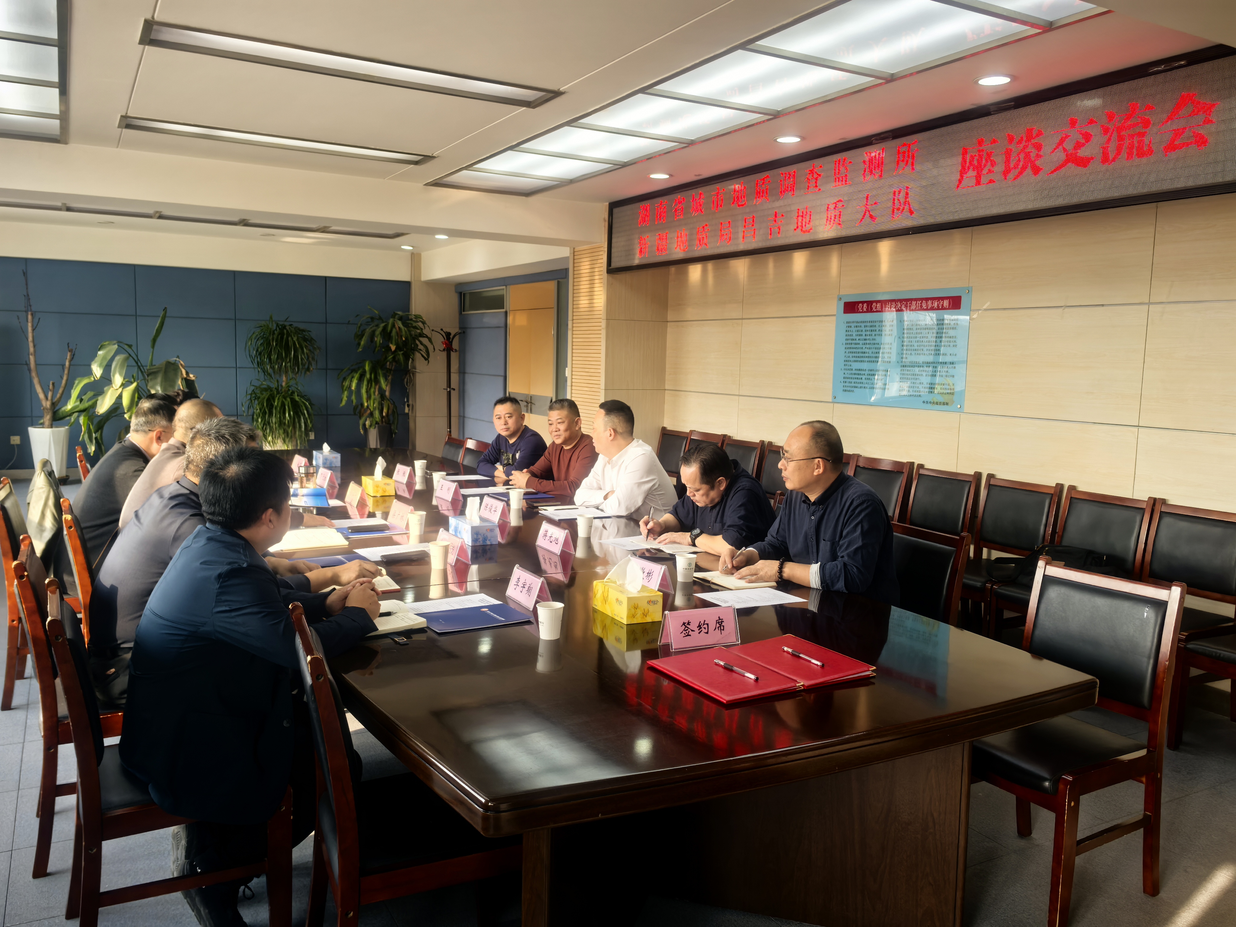 签约仪式上,双方以“深化地质合作、共促区域发展”为主题,围绕历史沿革、产业特色、技术优势展开深入交流,就地质找矿、地质灾害防治、生态修复等重点领域达成合作共识,标志着湘新两地地质力量在服务国家战略、保障能源资源安全、推动区域协同发展迈出关键一步。