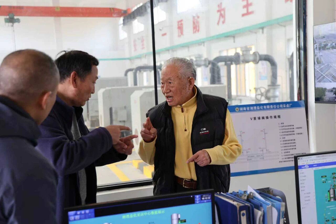 16日下午,考察组率先走进湘澧盐矿、红一井及湘澧盐化有限责任公司。考察过程中,宋瑞祥深情回顾湖南地质发展的历史变迁与地质找矿历程的峥嵘岁月。在红一井,他对省地质院城调所(原403队)探明岩盐矿、终结湖南“无盐历史”的奋斗历程给予高度肯定。在湘澧盐化采卤中心,他详细了解现代采卤工艺、盐腔综合利用及安全生产规范,强调保障资源供给的同时,要注重资源节约与高效利用。