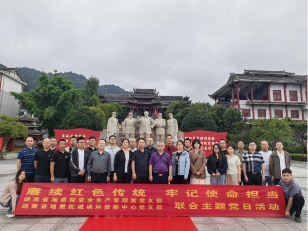 为强化党建引领,传承红色基因,凝聚发展合力,9月22日至23日,湖南省地质院安全生产管理室党支部与城调所资源勘查中心党支部共赴怀化市联合开展“赓续红色传统,牢记使命担当”主题党日活动。省地质院安全生产管理室主任温伟、副主任彭汉革、城调所副所长肖湘辉及双方30余名党员参加。