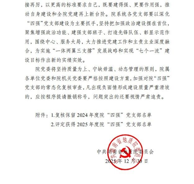 党建引领谱新篇‖湖南省地质院城调所2个党支部获评院“四强”党支部