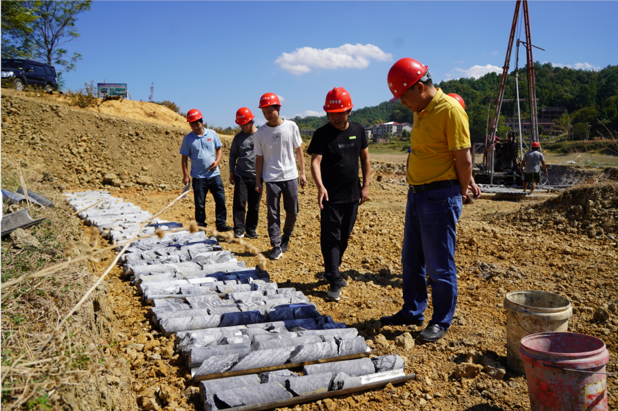 2日下午,杨建成一行马不停蹄赶往双峰县石牛乡新源村,亲切问候了钻探作业人员,并叮嘱大家务必遵守安全操作规程,做好安全生产工作。在轰鸣的钻机旁,他仔细研究了工程部署图和岩芯情况后指出,钻孔布置在震旦系硅质岩破碎带中,从松散的取芯情况来看,施工时要注意做好钻孔护壁,防止井壁垮塌。
