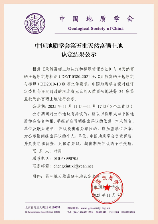 近日,中国地质学会传来喜讯,由省地质院地调所健康地质与农业地质创新团队申报的“麻阳苗族自治县文昌阁乡西皮溪村-大桥江乡杨柳坡村、石垅溪村天然富硒地块”,成功入选全国第五批天然富硒土地并进入公示阶段。
