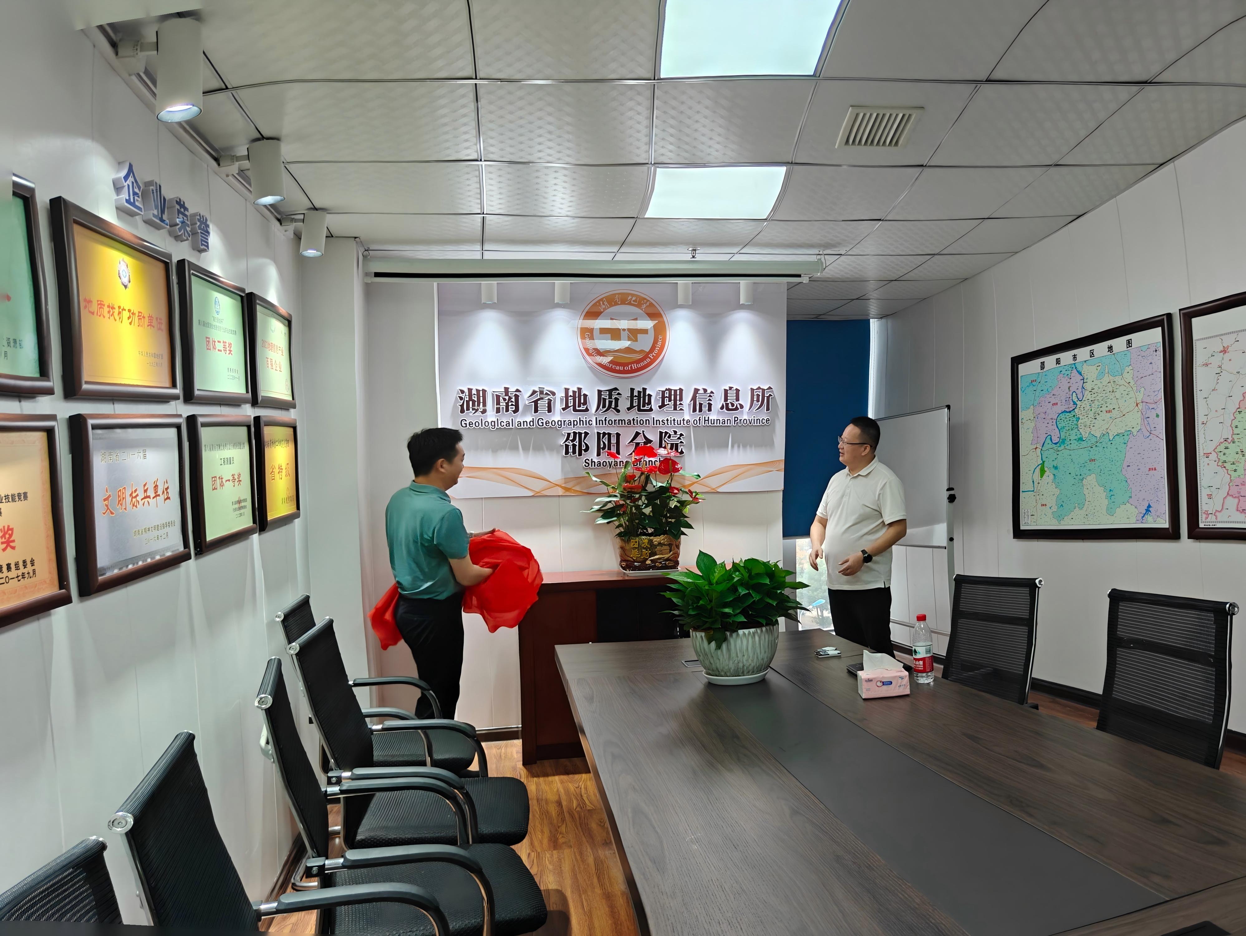 9 月 19 日,省地质院地信所邵阳分院举行揭牌仪式,所长樊任武、副所长蔡武宜出席并为分院揭牌。