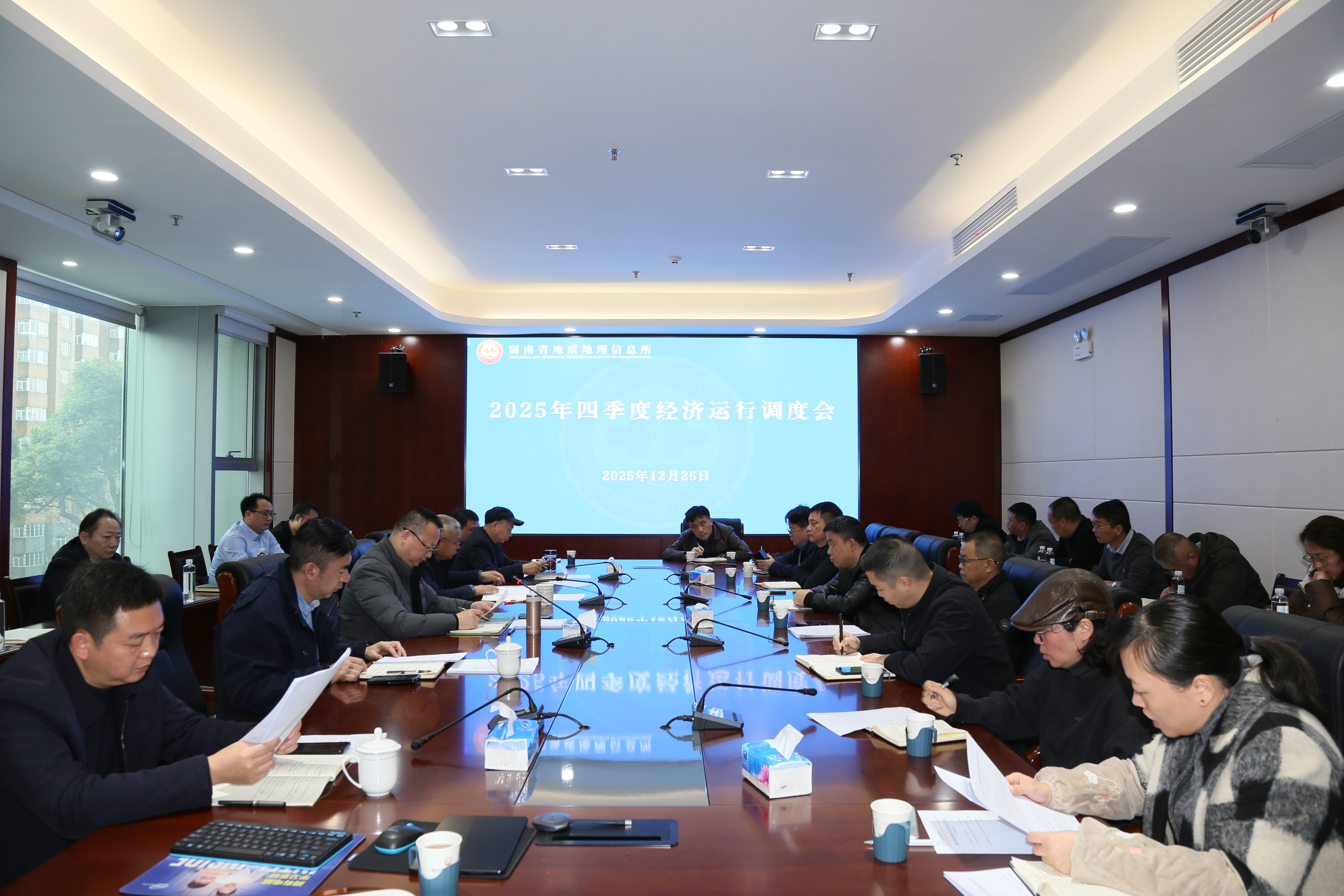 12月26日,省地质院地信所召开2025年四季度经济运行调度会,传达地质院审计整改会议精神,总结全年生产经营情况,明确下一步工作重点,号召全所上下以充分的准备和坚定的信心迎接年终任务考核和2026年新的挑战。