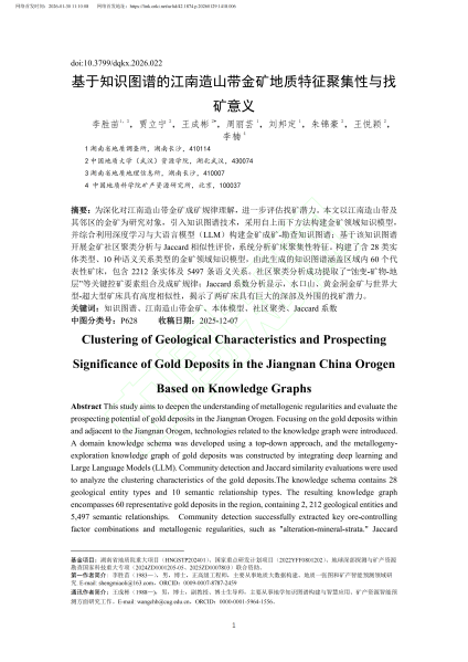 交流与思考:基于知识图谱的江南造山带金矿地质特征聚集性与找矿意义