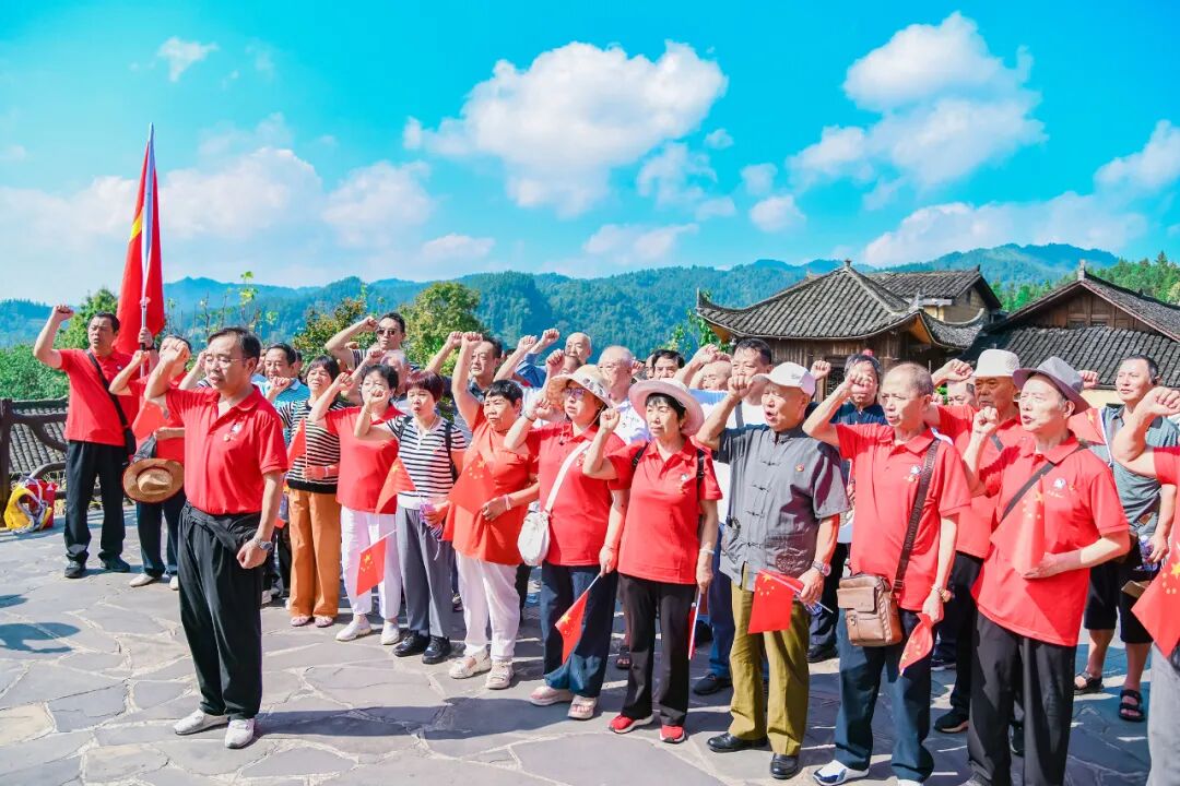 活动中,红色教育辅导员带领老党员们走进精准扶贫展览馆,重温习近平总书记“实事求是、因地制宜、分类指导、精准扶贫”的重要指示精神。大家沿着总书记当年考察的足迹,先后参观村部、金融扶贫服务站、电商服务站、“幸福人家”和“巧媳妇”农家乐等地,聆听当地干部群众讲述的扶贫故事,近距离与村民交流近年来的生活变迁,亲眼见证曾经的穷乡僻壤蜕变为“全国脱贫攻坚楷模”“全国文明村”“中国美丽休闲乡村”。在“精准坪”广场,老党员们面向鲜红党旗庄严宣誓,铿锵有力的誓言回荡在村寨上空,彰显着“离岗不离党、退休不褪色”的赤诚初心。