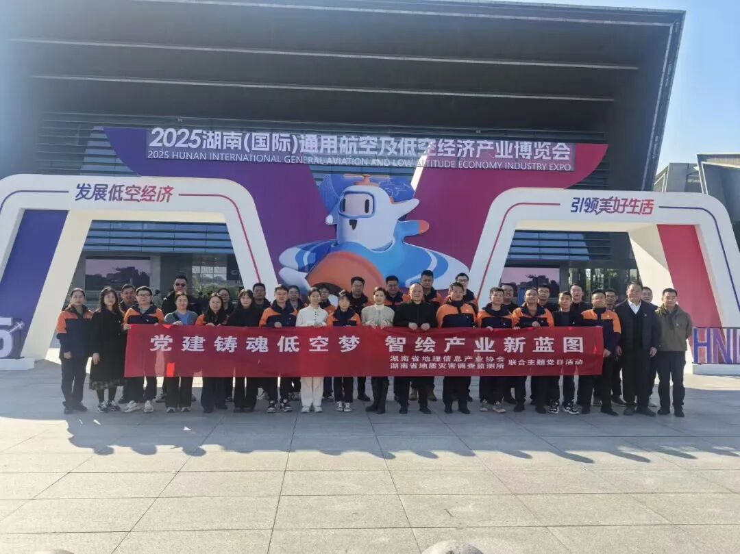 11月21日,湖南省地质院地灾所测绘院党支部、机关一党支部联合省地理信息产业协会党支部,赴2025湖南(国际)通用航空及低空经济产业博览会,开展“党建铸魂低空梦 智绘产业新蓝图”主题党日活动,以党建为纽带,凝聚行业合力,为“智绘”低空经济产业新蓝图注入红色动能。