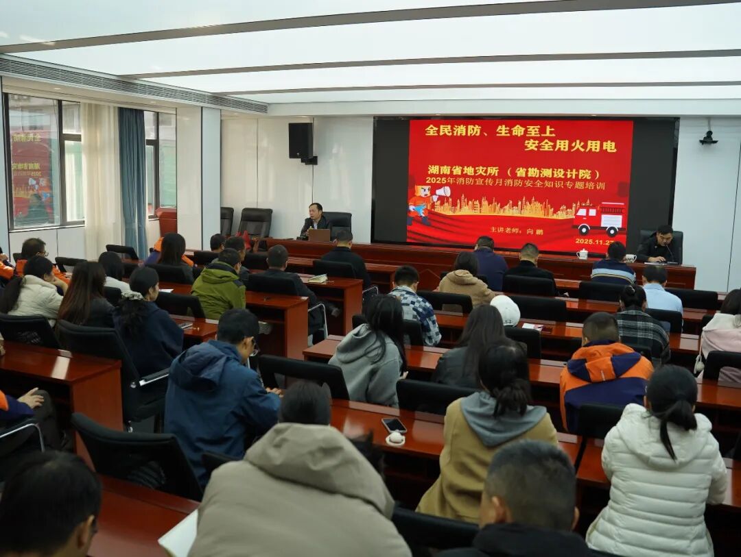 11月27日,湖南省地质院地灾所在所属省勘测设计院试验检测中心举办了一场内容丰富、实践性强的消防安全知识培训暨消防演练活动,进一步提升职工消防安全意识和应急处置能力,为单位高质量发展提供坚实的安全保障。