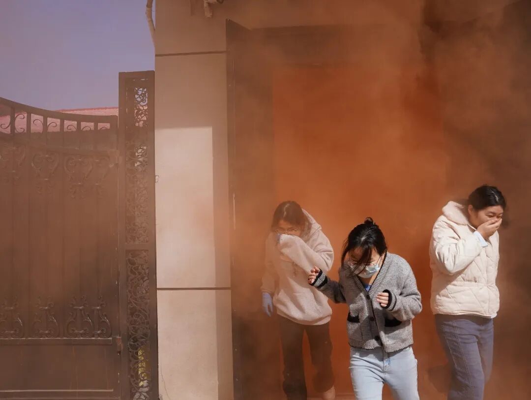 理论培训后随即启动应急疏散演练。模拟火警信号触发后,各部门人员在指挥组引导下,严格遵循“捂口鼻、低姿行”规范,沿预定路线快速撤离至安全集合点,整个过程高效有序,充分验证了应急预案的实战效能。