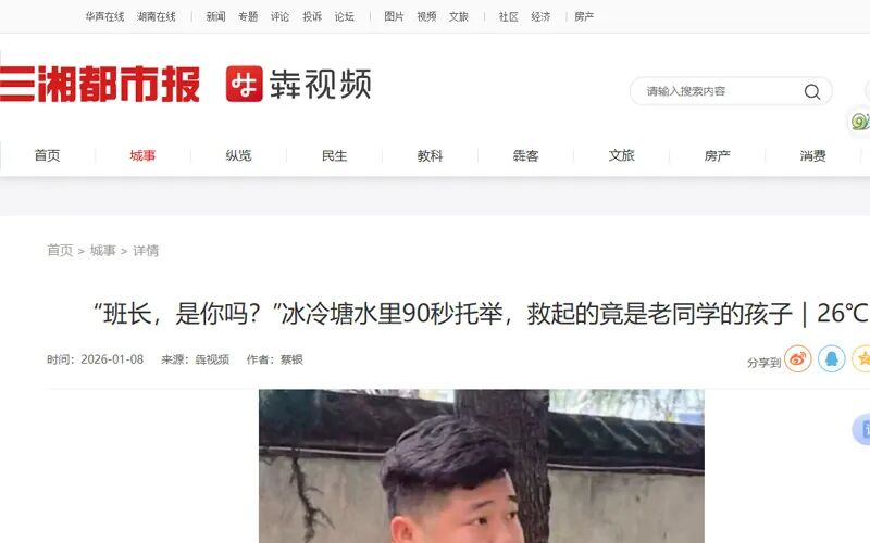 2026年1月8日 三湘都市报《“班长,是你吗?”冰冷塘水里90秒托举,救起的竟是老同学的孩子》