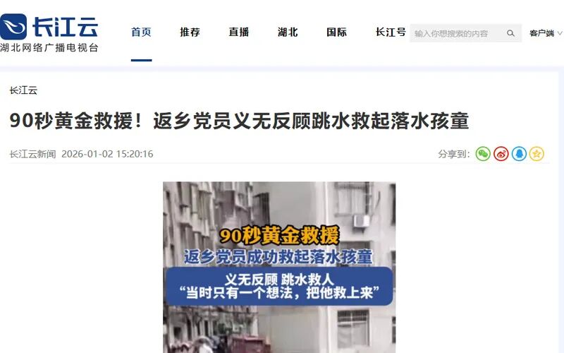 2026年1月2日 长江云新闻《90秒黄金救援!返乡党员义无反顾跳水救起落水孩童》
