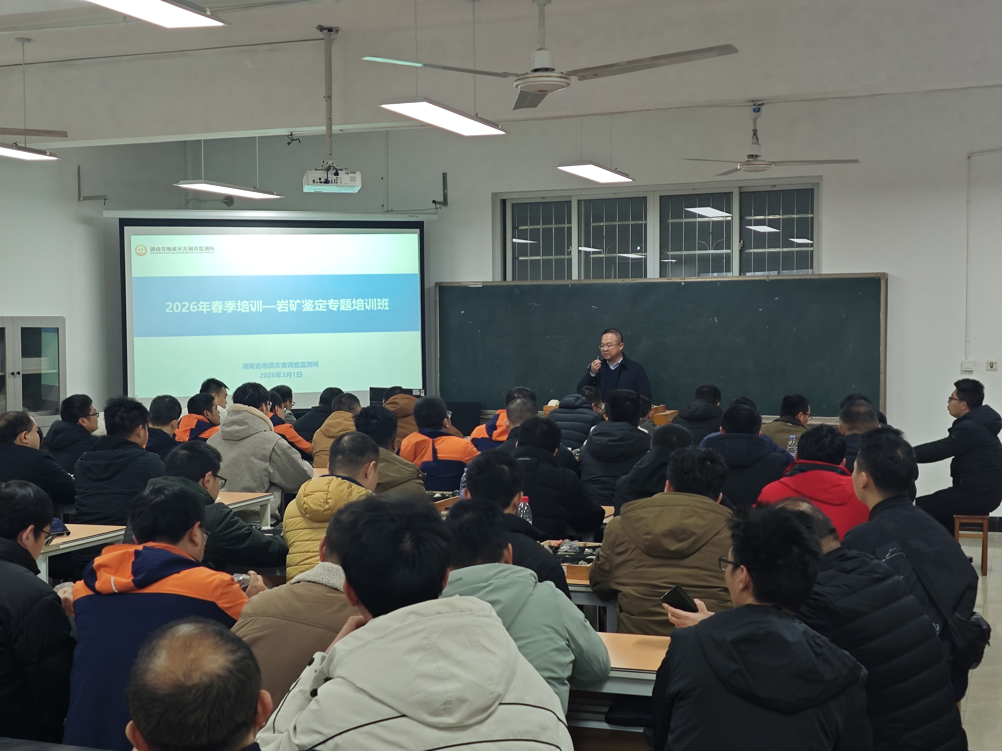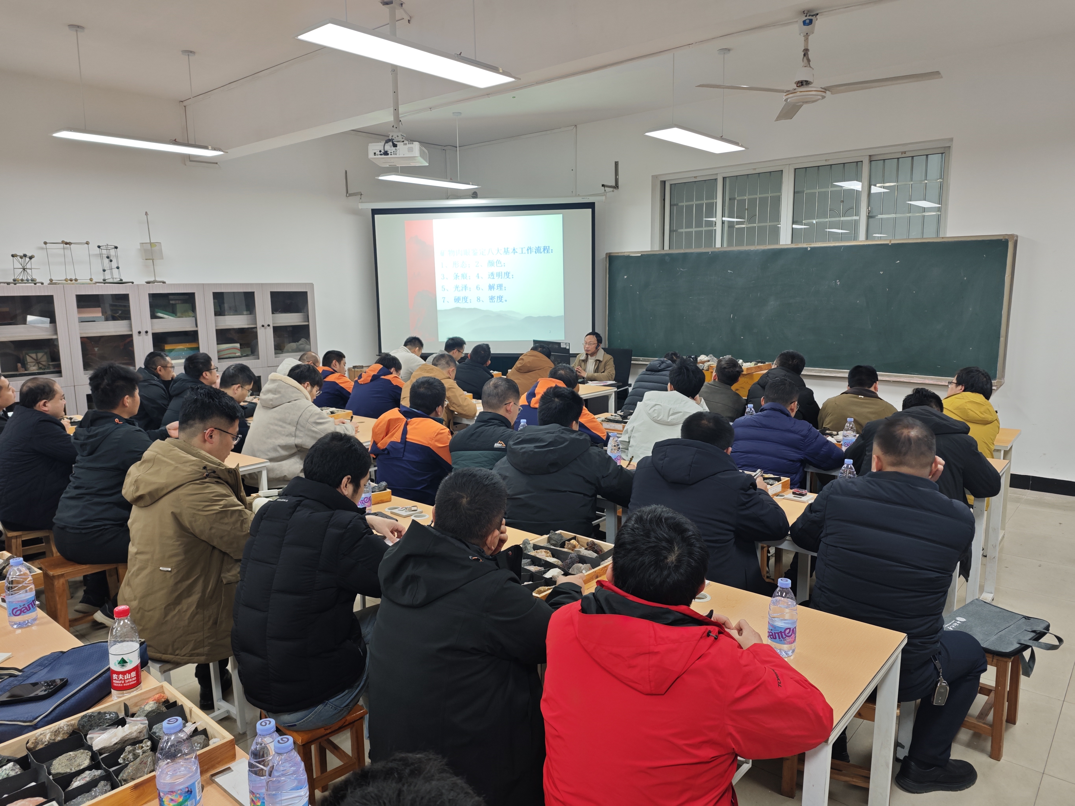 培训班于3月1日正式开班,为期3天,副所长文志林出席开班仪式,60余名技术骨干参训。特邀肖清华、刘冬良等业内资深专家担纲授课,课程紧扣沉积岩、变质岩、岩浆岩三大岩类及矿石、矿物的识别与鉴定核心内容,创新采用“专业理论授课+典型案例精讲+标本鉴定实操”的教学模式,将理论知识与野外实际工作深度结合,让参训人员在实操演练中深化理解、熟练技能。