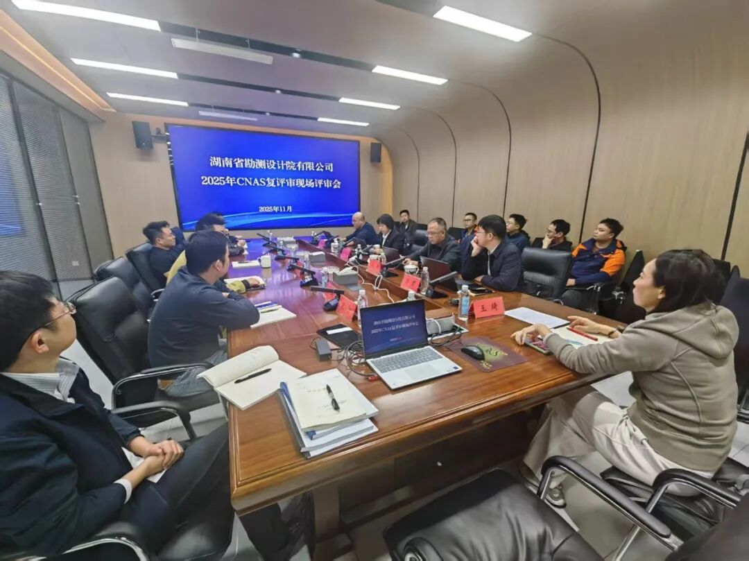 11月9日,湖南省地质院地灾所下属省勘测设计院有限公司(以下简称“省勘院”)顺利通过由中国合格评定国家认可委员会(CNAS)组织的复评审,其试验检测的专业能力和综合实力获得权威认证。评审会由专家组组长董伯春教授主持。