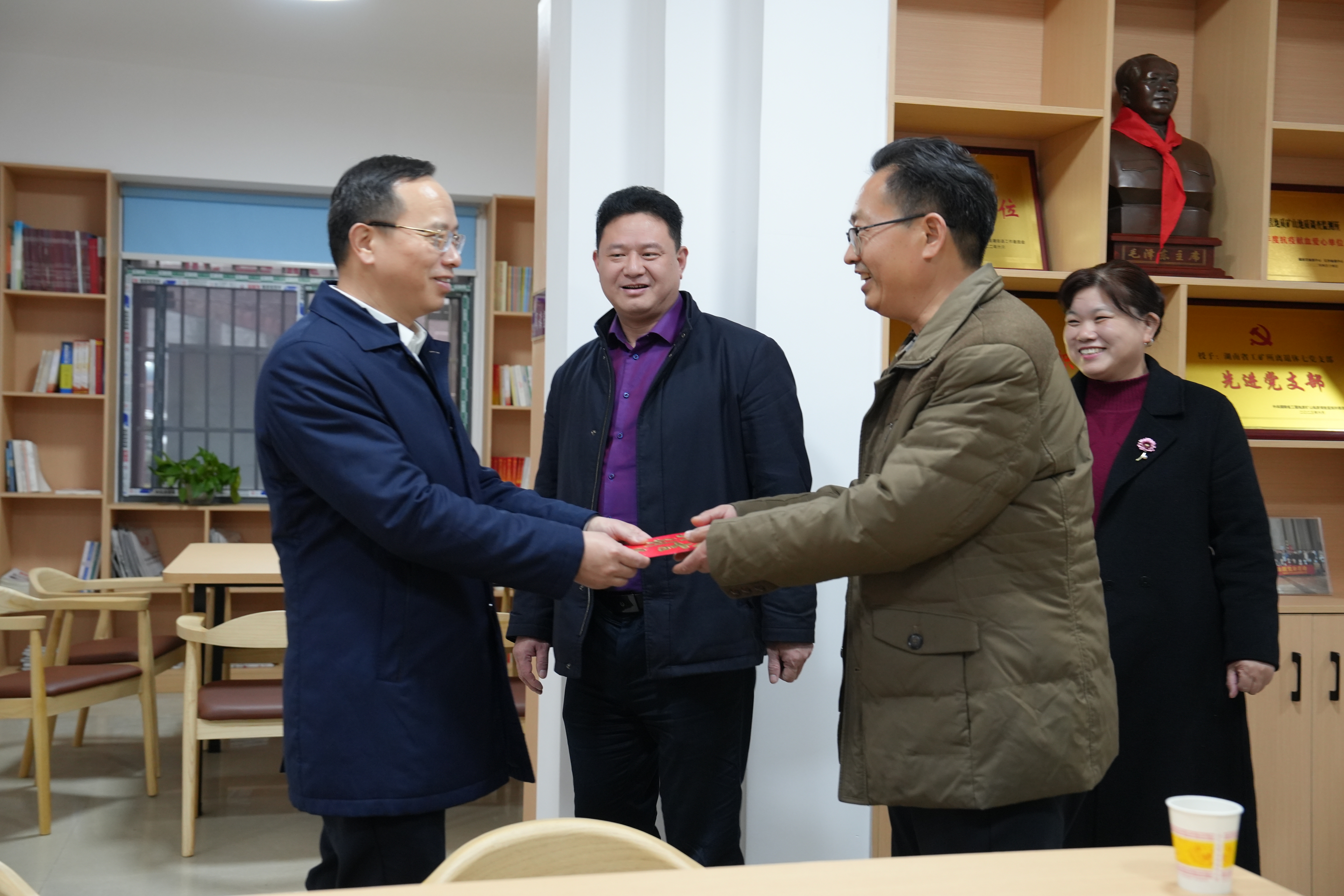 龙年春节将至,岁寒情暖人心。1月31日,省地质院党委书记谈文胜到省工矿所“金秋之家”离退休党支部党员活动室看望正在开展支部活动的退休干部李谋,向他了解离退休支部的工作开展情况,关切地询问他的身体状况,为他送上新春的祝福及慰问金。省院办公室主任谢瑞其、离退休部部长王耀军、地质工会主任刘胜平,省工矿所所长吴兵良,副所长龙文