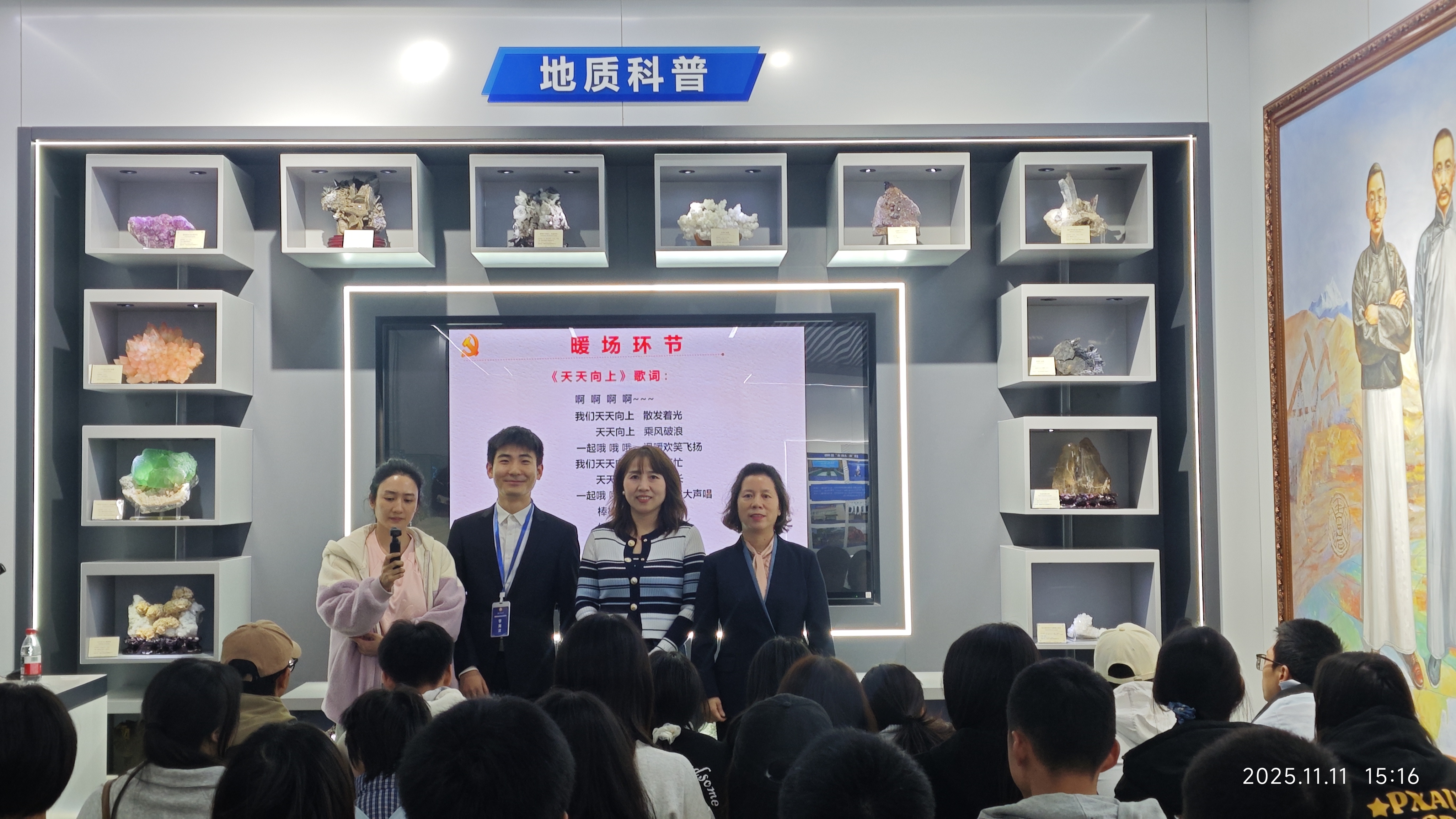 作为湖南省科普教育基地,湖南地质展厅在省地质院科技合作室的统筹指导下,由核地质科普团队具体承担11月系列课程设计与实施。团队提前谋划、精心设计,围绕课程内容与呈现形式反复打磨,力求在专业性与趣味性之间取得平衡,为新生打造高质量科普课堂。