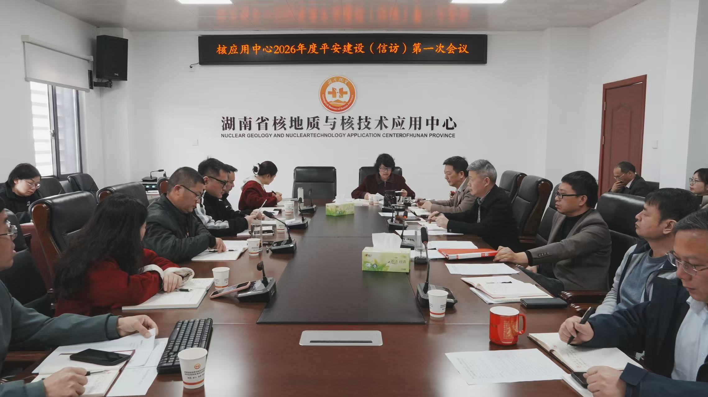 3月12日,湖南省地质院核应用中心召开2026年平安建设第一次专题会议。中心主任、党委副书记杨长明出席会议,会议由中心党委书记、副主任黄春林主持。