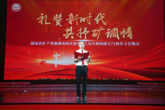 9月29日晚,省矿调所庆祝中华人民共和国成立75周年文艺晚会在郴州市广电中心一号演播大厅举行,郴州市自然资源和规划局、市应急管理局、矿山企业代表和该所职工代表500余人齐聚一堂,共庆祖国母亲75周年华诞。省矿调所所长杨长明在晚会上致辞,湖南宝山有色金属矿业有限责任公司党委书记、董事长赵雄飞作为嘉宾代表致辞。