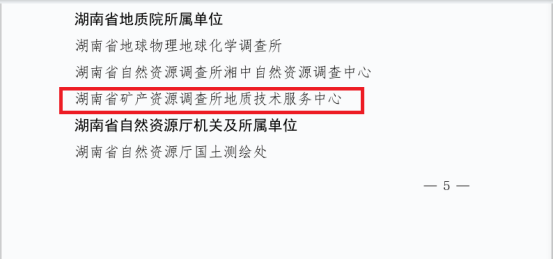 近日,湖南省人力资源和社会保障厅、湖南省自然资源厅联合发布表彰决定,授予湖南省地质院矿调所地质技术服务中心“全省自然资源系统先进集体”称号。
