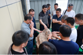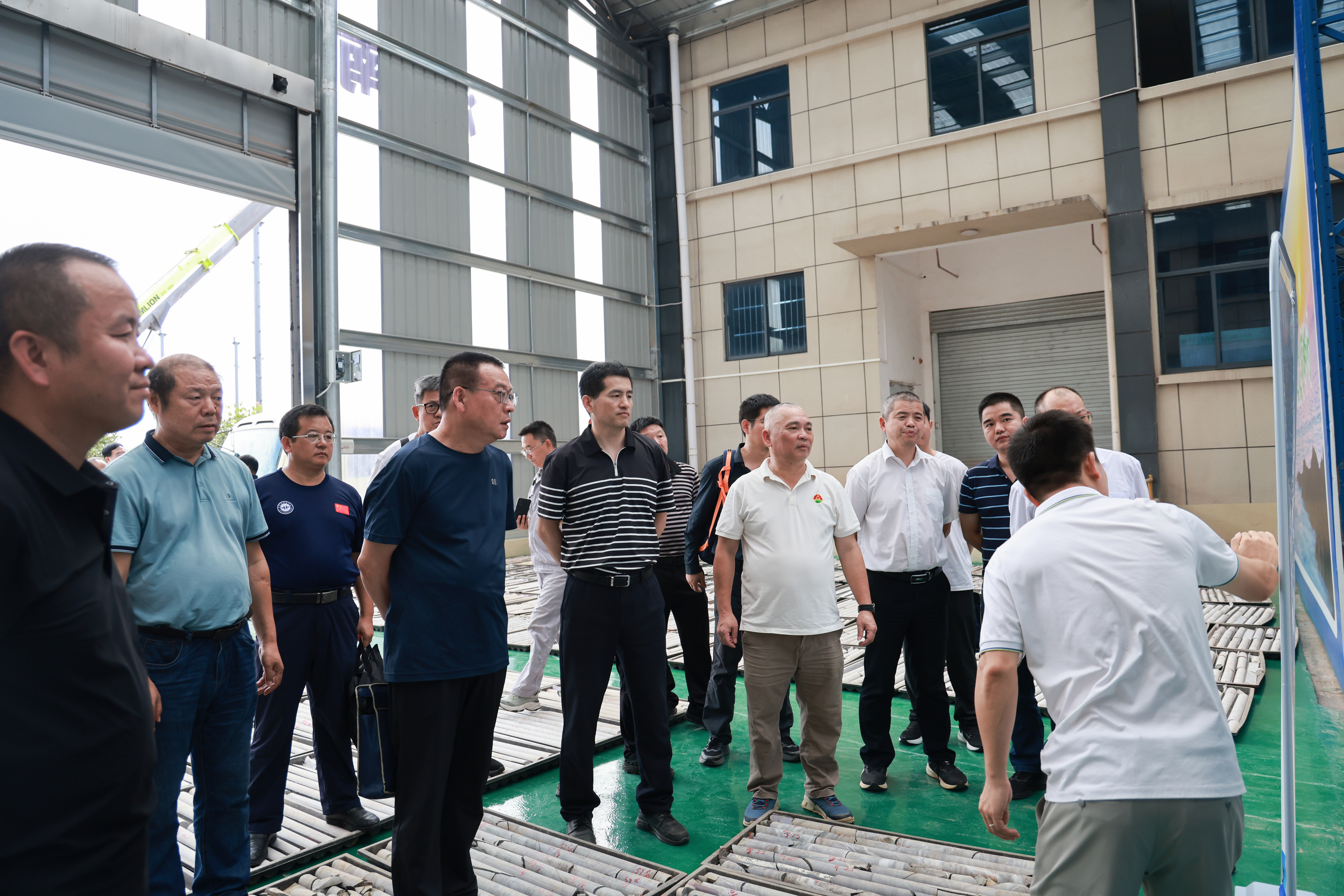 在大中赫公司的岩心库,专家们查看了鸡脚山矿区不同钻孔岩心,通过辨析岩石蚀变特征、矿化强度及矿物组合,与湖南地质矿调所专家就矿床地质特征、成矿规律等核心问题展开深度研讨。