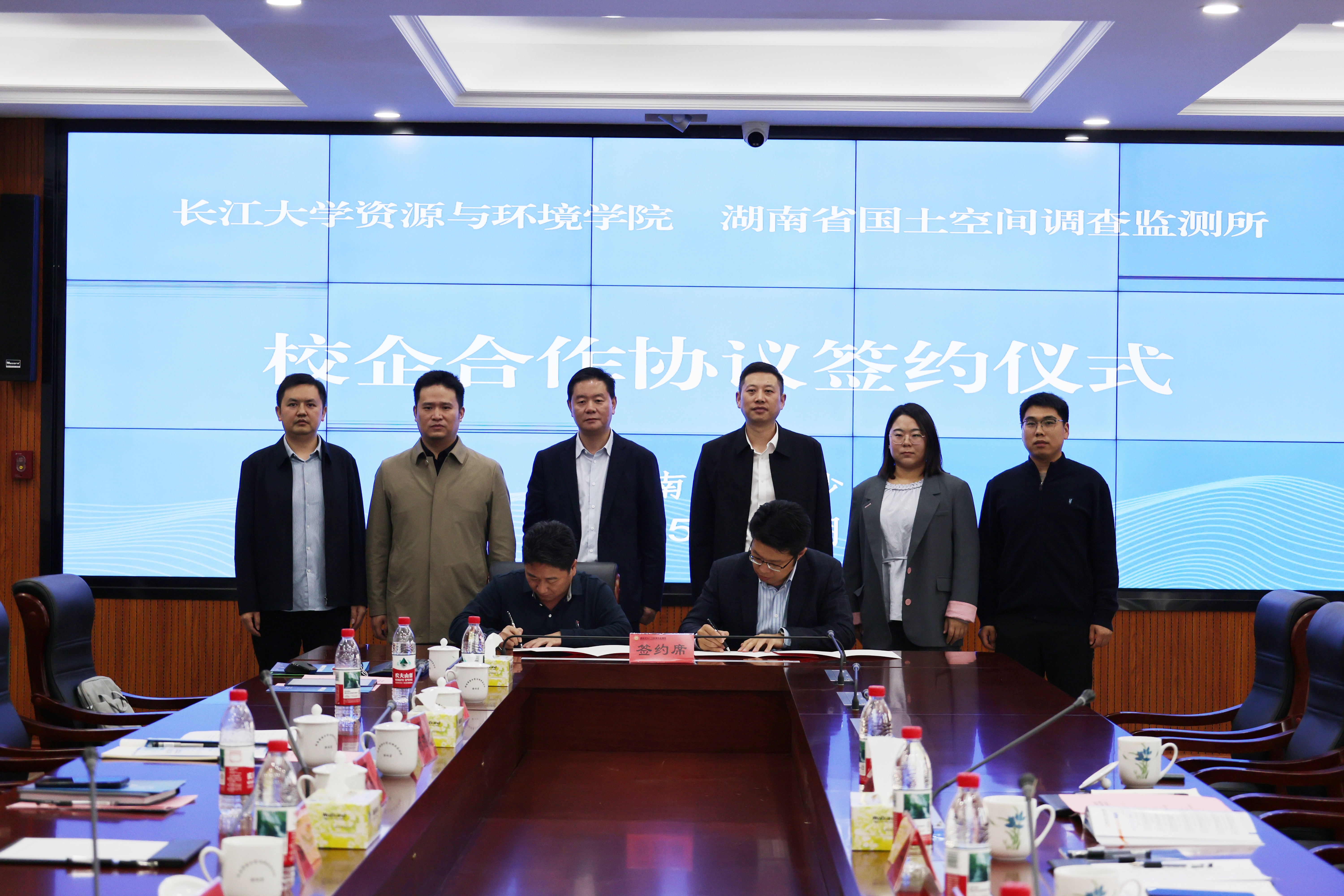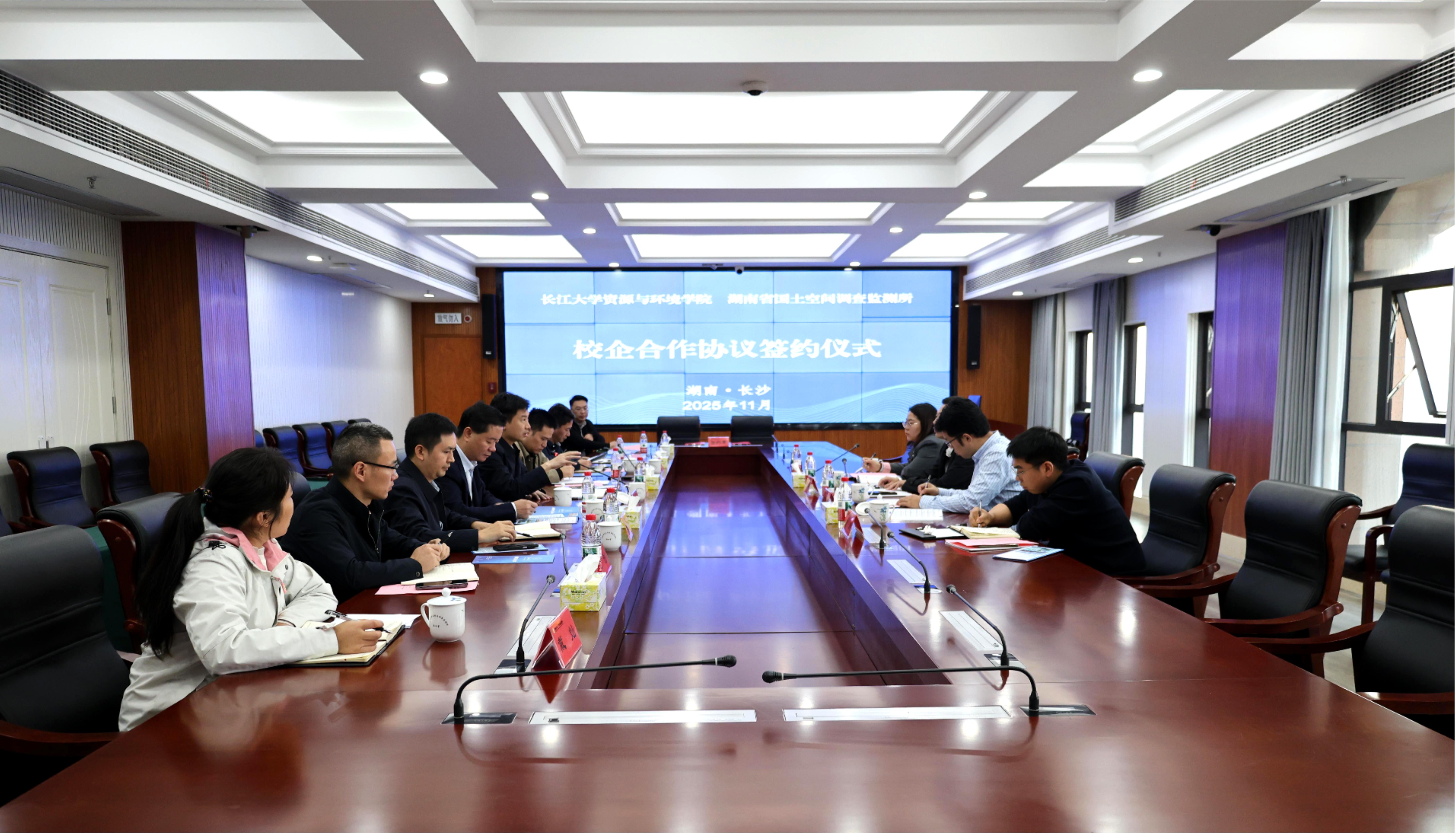 金秋送爽,硕果可期!为进一步深化产学研融合,共同服务国家地质事业高质量发展,11月4日,湖南省地质院空间所和长江大学资源与环境学院(以下简称“资环学院”)在长沙有色地勘大厦举行校企合作协议签订仪式。空间所所长李剑雄、党委书记龙栋炜,资环学院党委书记王宁见证签约;空间所副所长陈湘桂、资环学院副院长王现勋代表双方签约。