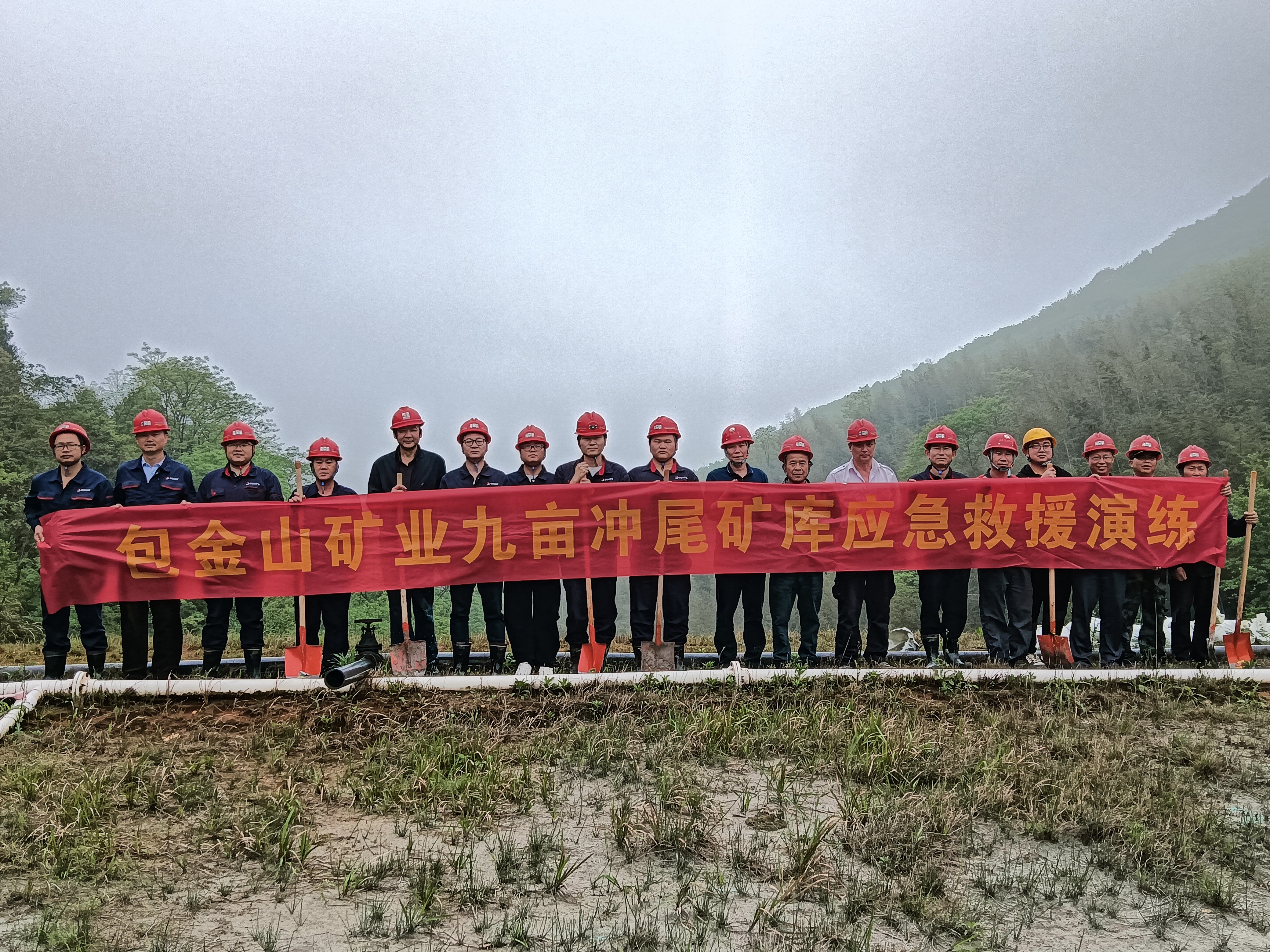 为切实筑牢汛期安全防线,全面检验极端天气下应急处置能力,4月10日,空间所包金山矿业在九亩冲尾矿库组织开展应急处置实战演练,公司各部门及合作单位共20余名人员参加。