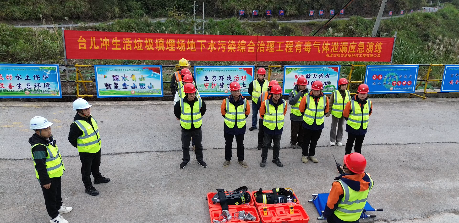 湖南省地质院空间所吉首台儿冲地下水综合治理项目开展有毒气体泄漏应急演练