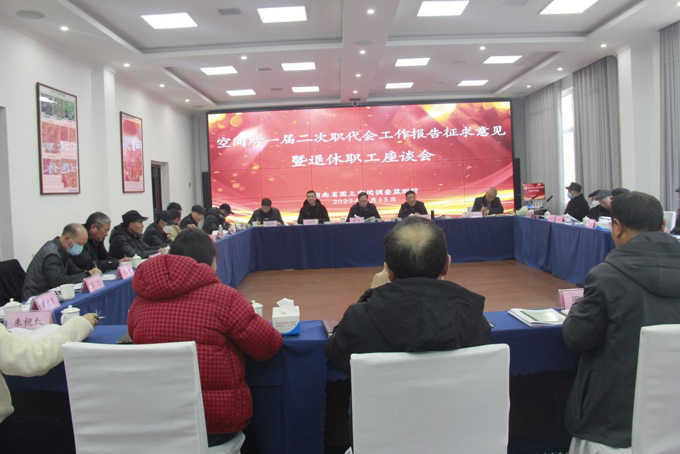 2月15日下午,省空间所在湘潭大数据中心组织召开了一届二次职工代表大会工作报告征求意见暨退休职工座谈会。所长康汤出席并讲话,党委书记曾琳主持会议并讲话。党委副书记、副所长刘卫阳,纪委书记王朝阳,副所长、工会主席刘亮辉,来自长沙、湘潭、株洲三个片区17位退休处级干部、党支部书记、老专家及党群工作部相关人员参加。