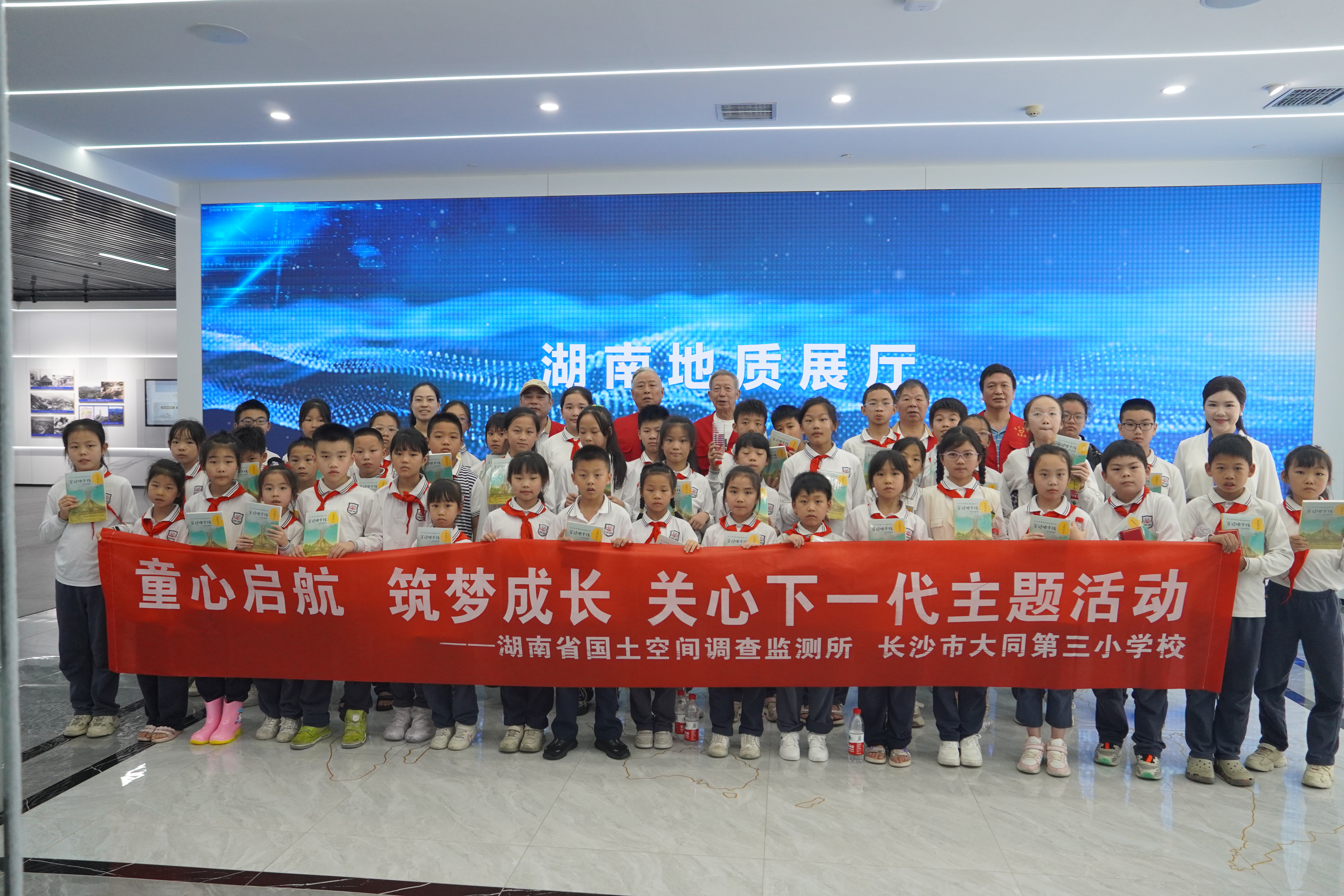 为深入贯彻党的二十大精神,认真落实习近平总书记对关心下一代工作的重要指示精神。6月26日,省空间所关工委联合长沙市芙蓉区大同第三小学,以“童心启航·筑梦成长”为主题,到湖南地质展厅开展关心下一代活动。长沙市芙蓉区大同第三小学多个年级一百多名学生参加。