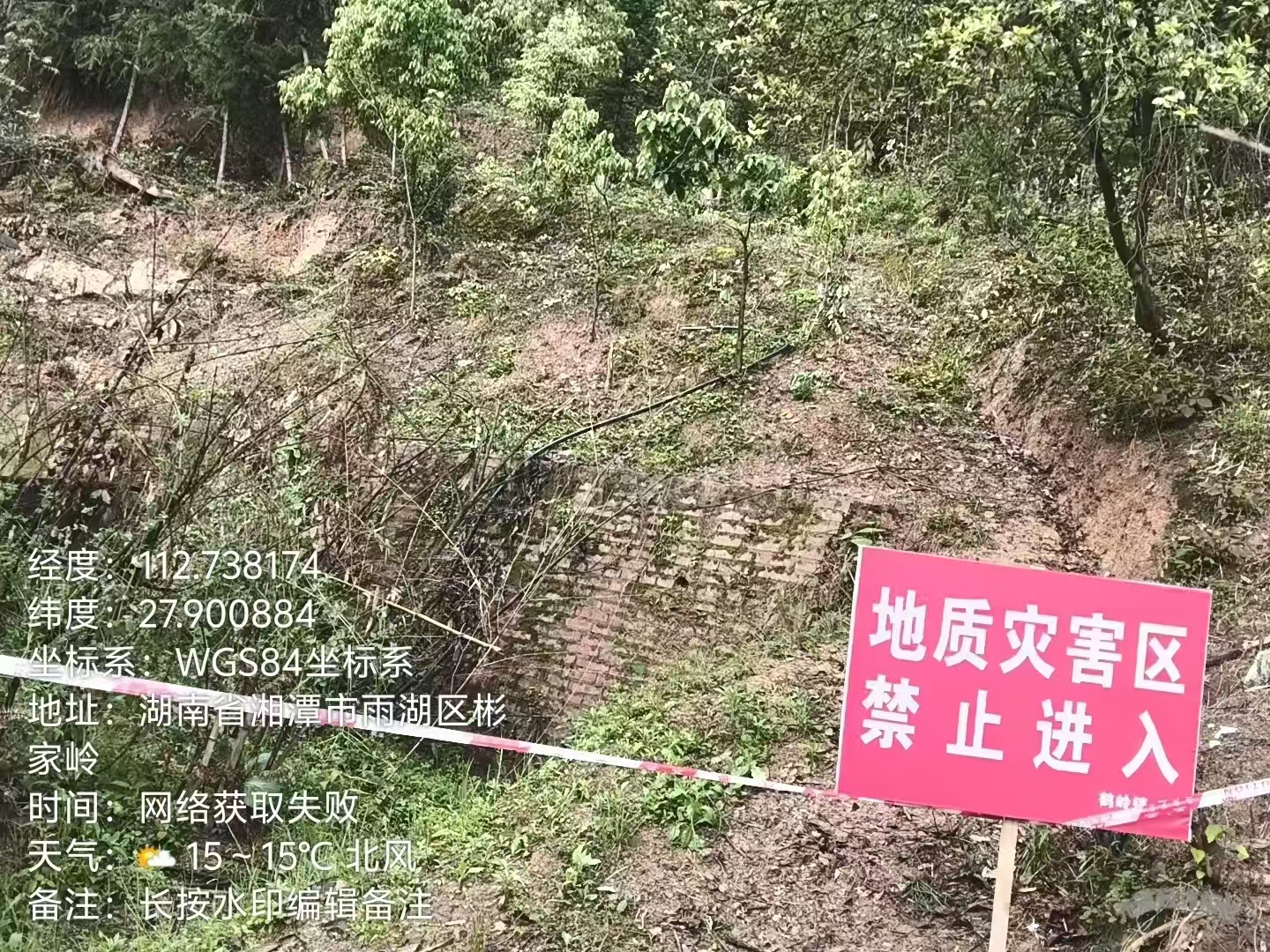 4月17日,受持续强降雨影响,湘潭市地质灾害预警平台监测到雨湖区鹤岭镇新泉村日新组两头塘发生地质灾害位移异常报警,湖南省地质院空间所、雨湖区自然资源局、鹤岭镇人民政府迅速响应、协同联动,成功实现提前预警、果断转移、安全避险,未造成人员伤亡。