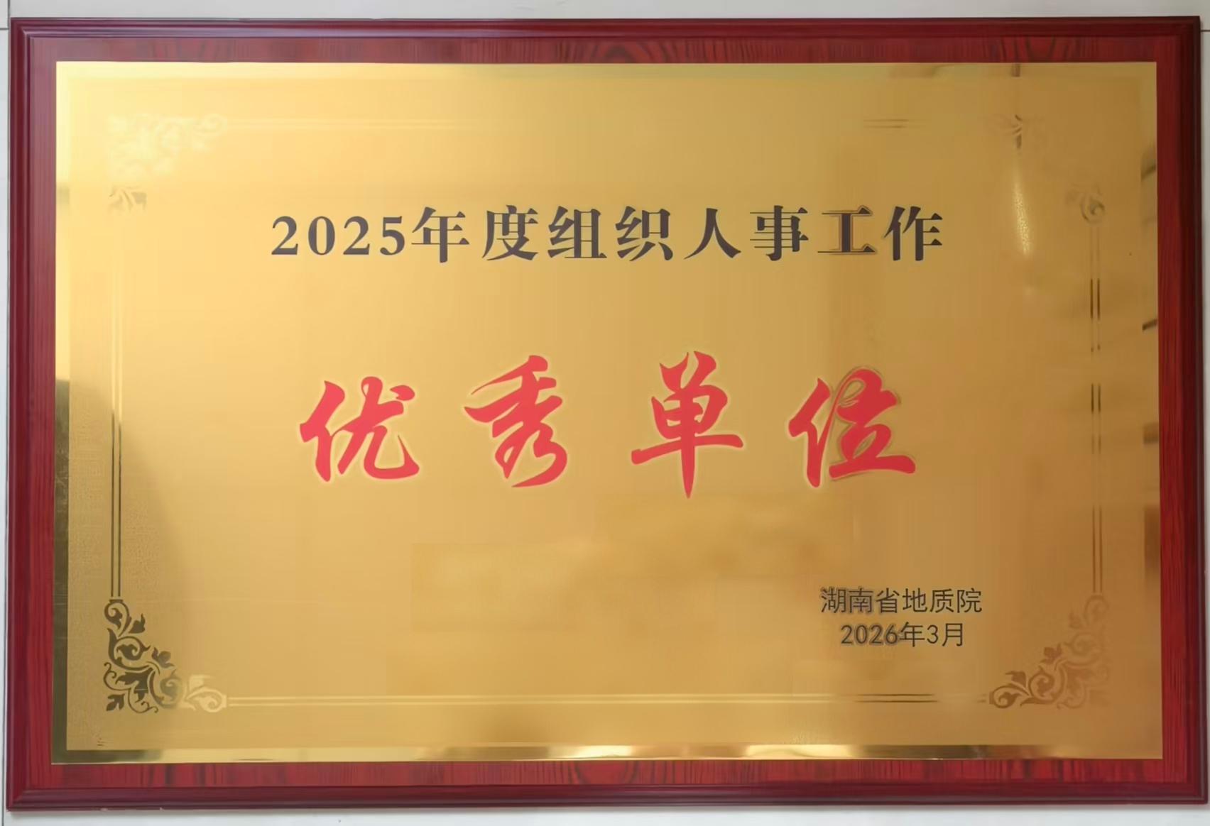 喜报!省地质院水环所蝉联2025年度组织人事工作优秀单位