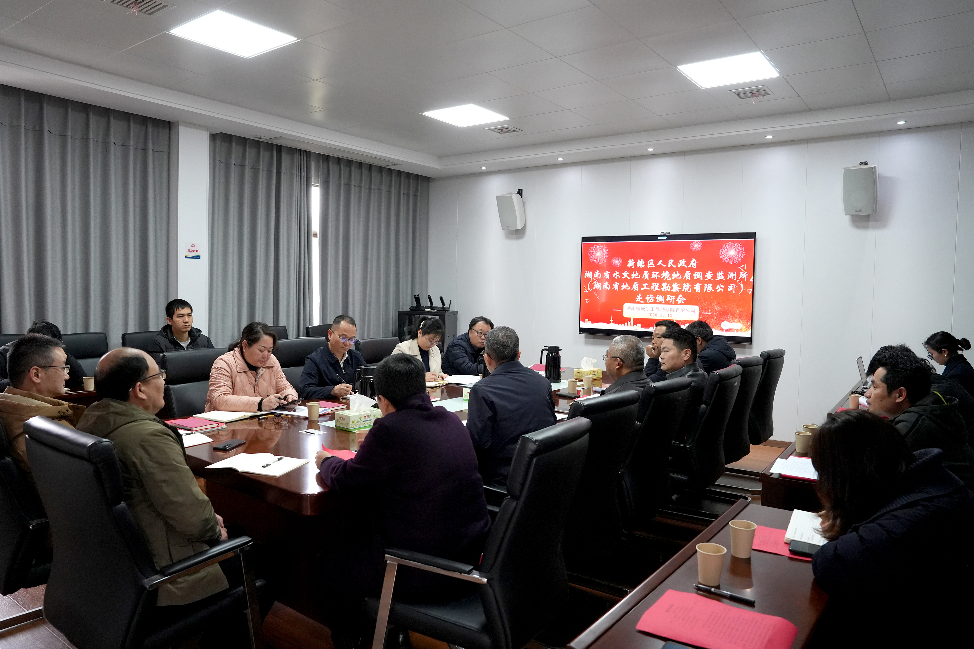 随后,区委常委、副区长王荣带领相关部门参加座谈。与会人员观看了工勘院有限公司宣传视频,耿磊、苏吉平先后介绍了水环所、工勘院有限公司的整体情况,包括经营业务、人员结构、资质与装备、重要业绩成果、公益技术支撑及科技创新进展,并汇报了下一步发展计划。他们表示,作为扎根荷塘区五十余年的专业技术单位,水环所和下属企业工勘院有限公司始终积极融入地方经济建设,依托雄厚的技术实力,在水文地质、环境地质、地质灾害防治、矿产勘查、工程勘测、测绘地理信息等多专业领域取得了显著成效;同时作为株洲市地质灾害防治技术指导中心和株洲市地震和地质灾害应急救援中心,全面服务株洲地区地质灾害防治和应急救援工作;水环所、工勘院有限公司对荷塘区委、区政府及各职能部门长期以来的关心与支持表示衷心感谢,并表示将持续服务株洲,深耕荷塘,为地方区域经济发展协同共进。