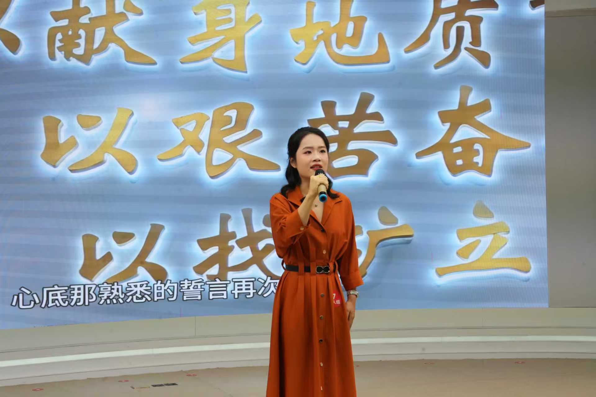 决赛现场,选手们结合自身工作实际,分享对地质事业的理解与感悟:陈思洁通过《又到韶山》,带大家重温红色记忆,诠释地质人继往开来的赤子之心和坚定信仰;吴秉权以《青春无悔,高山红梅》致敬一代代地质人甘于奉献的崇高精神;李汶珂以《湖南地质的山河密码》,解读了三湘大地地质演变与人文发展的内在联结;洪一贝通过演绎作品《一份接续奋斗的生态答卷》,展现水环人践行生态保护的责任担当。真挚的演绎与深刻的感悟,充分展现了水环人践行地质精神、传播生态理念的昂扬风貌,赢得了现场评委与观众的阵阵掌声。
