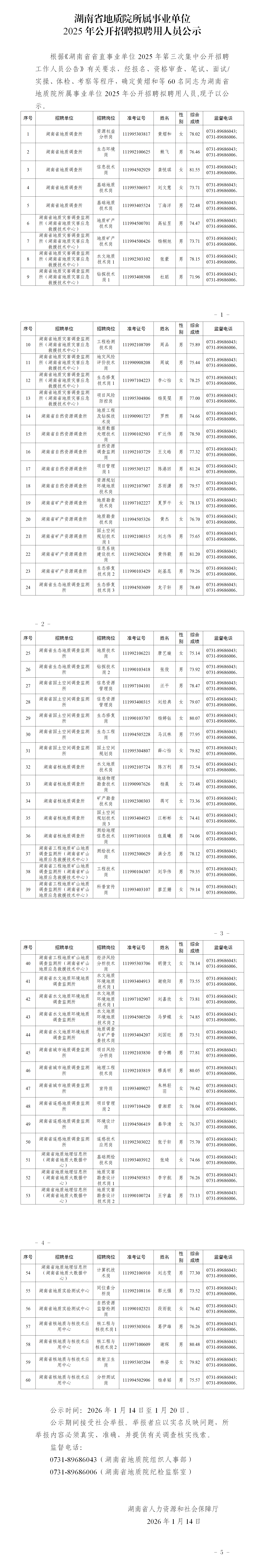 湖南省地质院所属事业单位2025年公开招聘拟聘用人员公示