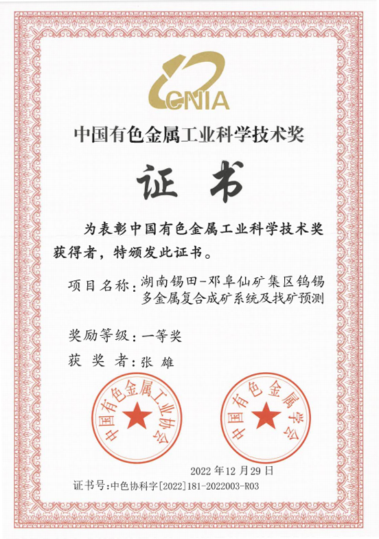 他先后主持或主要参与省部级、厅局级地勘科研项目近10项。大胆尝试将二维地震勘探引入到湘东煤炭勘查项目中,首次将土壤吸附态烃汞测量应用到湘东北金矿深部预测和隐伏矿预测中,地质找矿业绩和科研成果突出。主持的科研项目“地质大数据在锡田地区钨锡多金属矿找矿中的应用”,应用地质大数据,针对不同成矿温度和不同矿床类型的钨锡矿开展找矿预测,优选出5个找矿靶区,经钻探验证新增钨锡资源量2.5万吨,达中型规模。2022年主编专著《湖南锡田-邓阜仙钨锡多金属复合成矿系统及找矿预测》,经院士专家鉴定达到国际领先水平,并荣获中国有色金属工业科学技术奖一等奖(个人排名第三)。参加工作至今,公开发表学术论文19篇,其中SCI期刊9篇、中文核心期刊4篇。