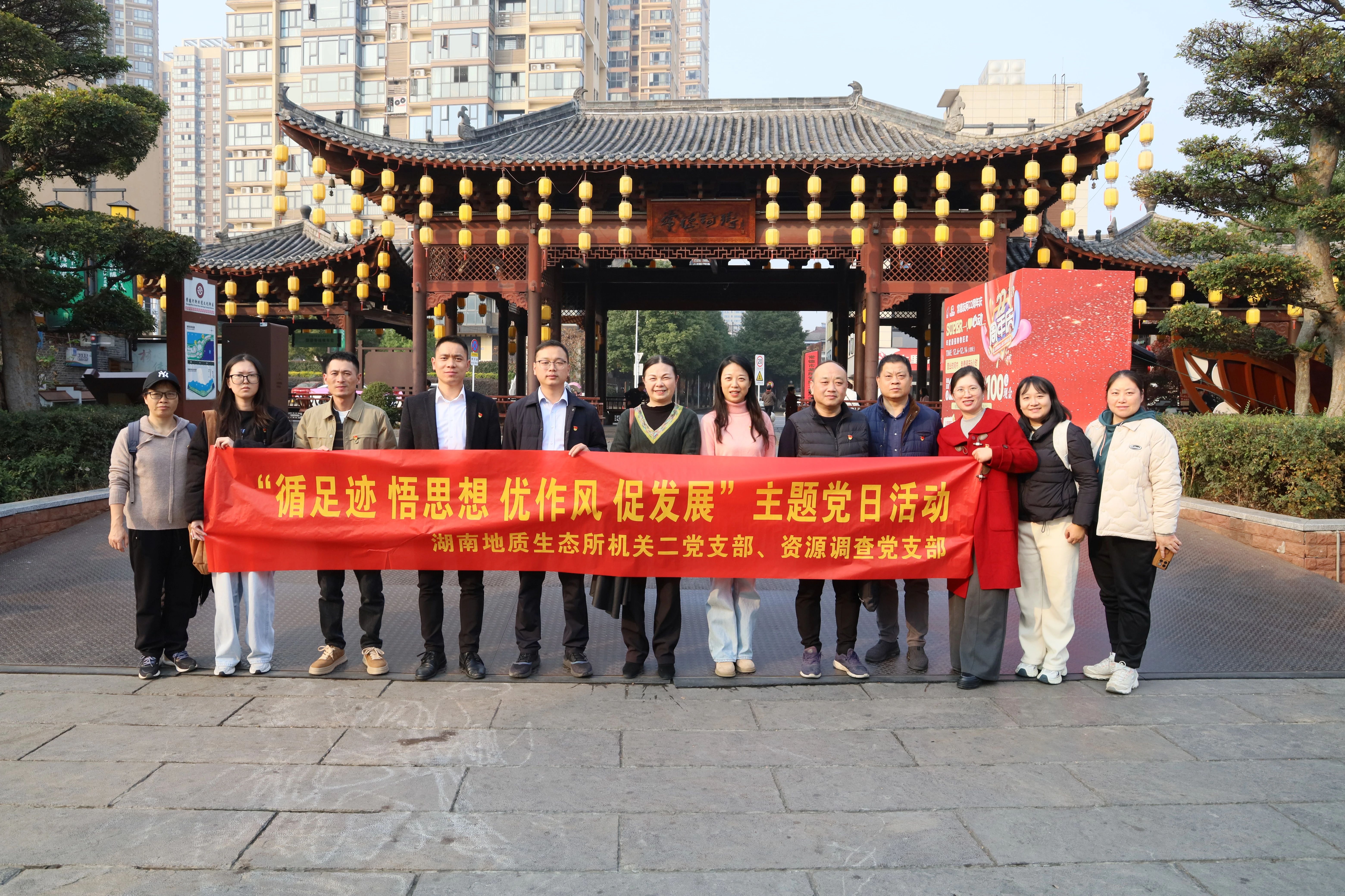 为深入贯彻党的二十届四中全会精神,扎实推动绿色转型与创新发展,近日,湖南省地质院生态所机关二党支部与资源调查党支部携手赴常德,联合开展“循足迹 悟思想 优作风 促发展”主题党日活动。所党委书记张健参加。