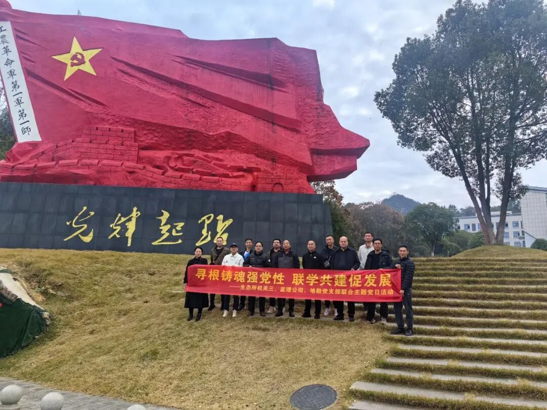 为深入贯彻落实中央八项规定精神,强化党员党性修养与作风建设,12月16日,生态所机关三党支部、监理公司党支部、地勘党支部组织党员干部,赴浏阳市文家市镇秋收起义文家市会师纪念馆及胡耀邦故居,联合开展"加强作风建设 践行中央八项规定精神"主题党日活动。通过实地参观学习与交流研讨,党员们进一步筑牢廉洁自律、务实为民的思想根基。副所长赵央连,院管干部姜中笑、魏元泵参加本次活动。