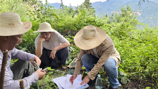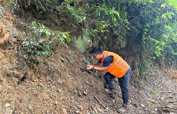 ▲技术人员正在隆回县石桥铺金矿普查项目上开展野外地质调查工作。(李晓峰摄)