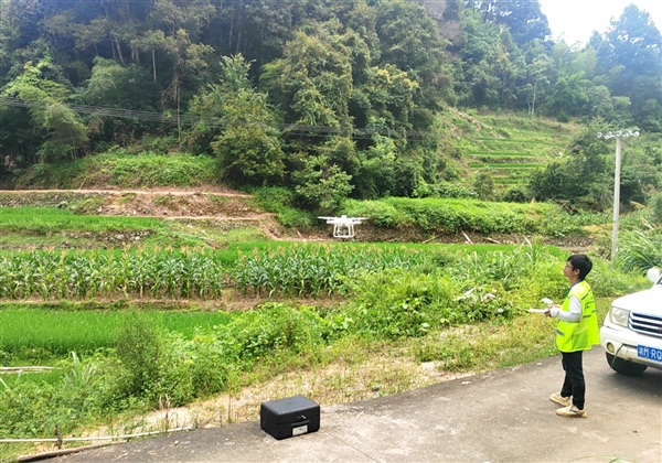 ▲技术人员在永州市卫星监测项目采用无人机开展卫片图斑现场举证和核查工作。(张之浩摄)