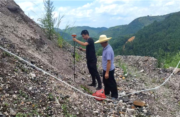 ▲宜章县关溪乡横冲煤矿矸石堆储量评估项目现场作业。(刘富军摄)