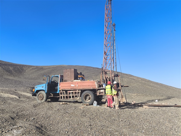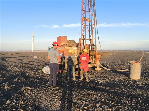 ▲新疆托克逊500MW 风电项目初步勘察风机位和升压站钻探施工。(邓振业摄)